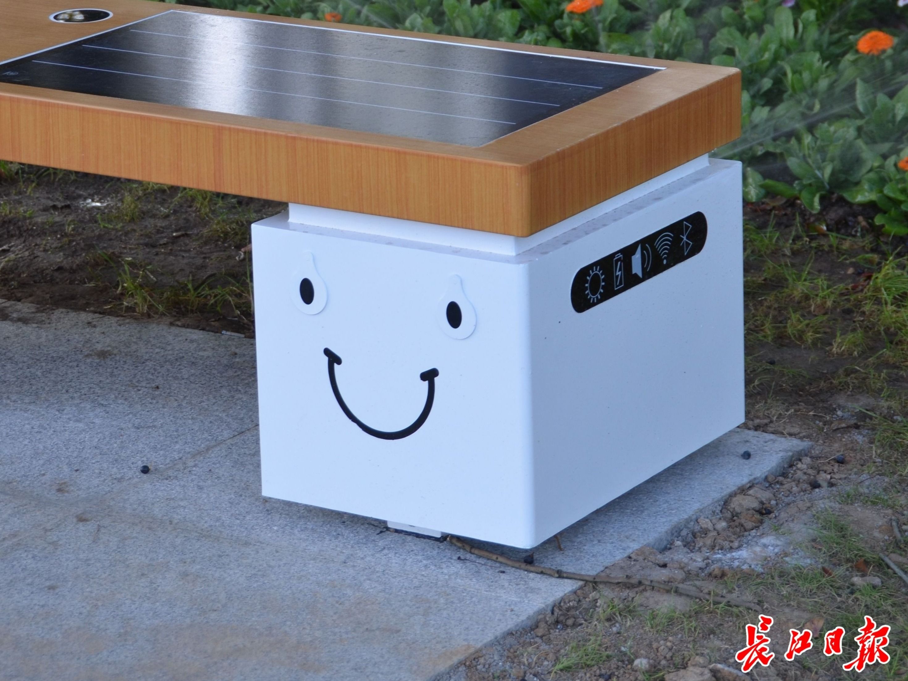 汉口江滩配上了可充电的太阳能板充座椅。 记者杨丝涵 摄