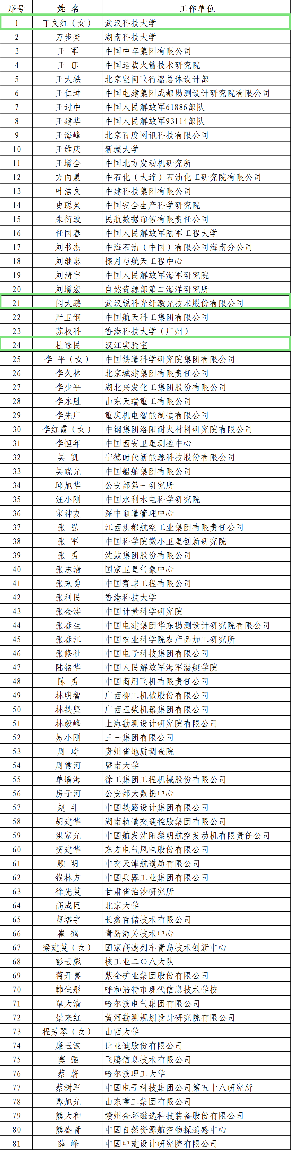 19日上午,“国家工程师奖”表彰大会在人民大会堂举行,共有81名个人被授予“国家卓越工程师”称号,50个团队被授予“国家卓越工程师团队”称号,武汉上榜个人和团队如下: