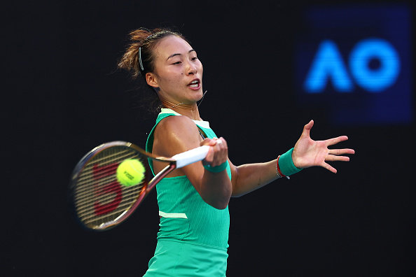 郑钦文在比赛中。 图片来源:WTA国际女子网球协会官微