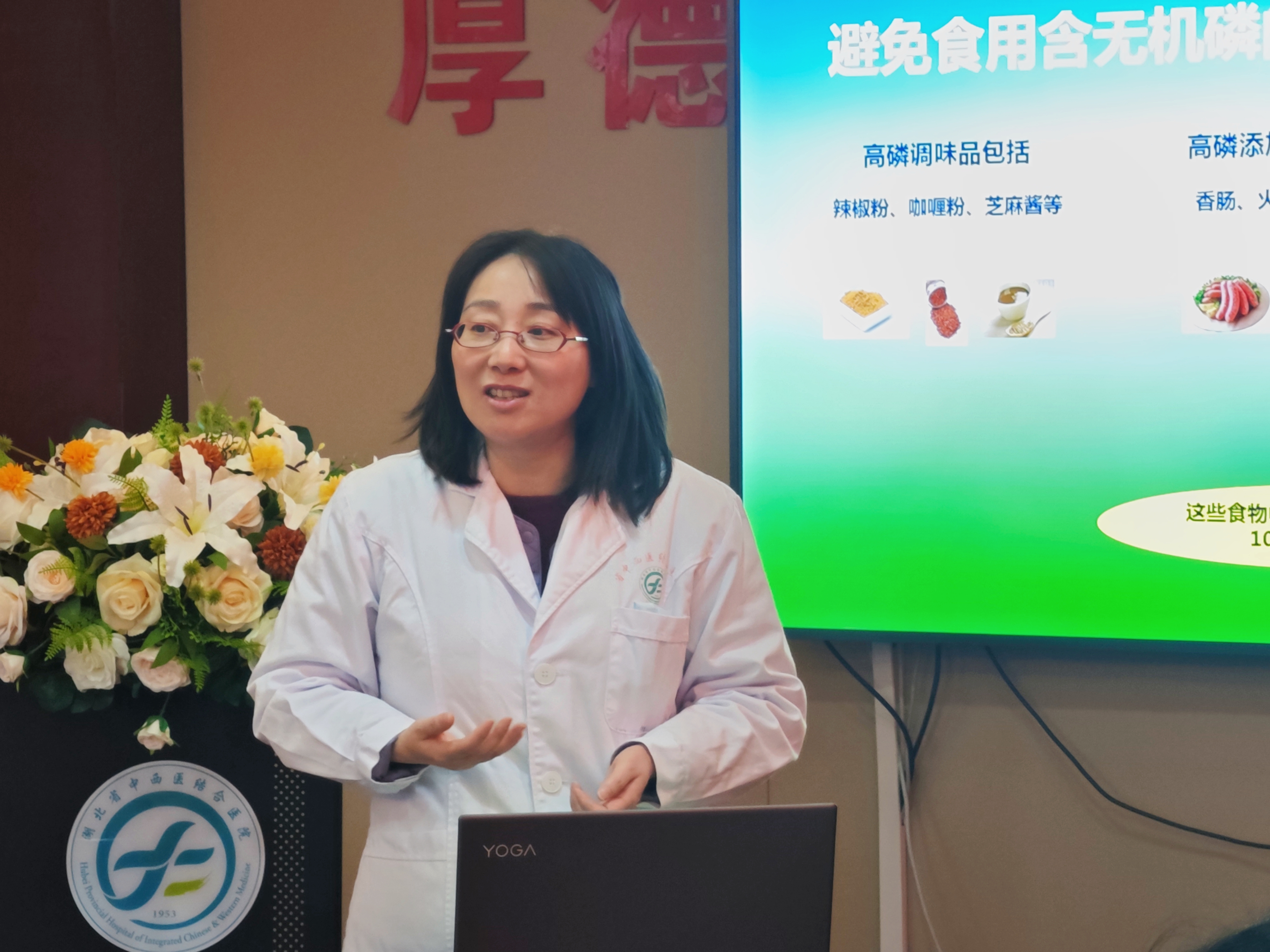 湖北省中西医结合医院肾病内科徐彬护士长讲活动内容。