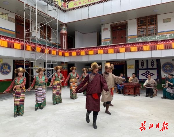 乃东非遗展示馆,藏族朋友带来藏族踢踏舞。长江日报特派记者李玉莹 摄