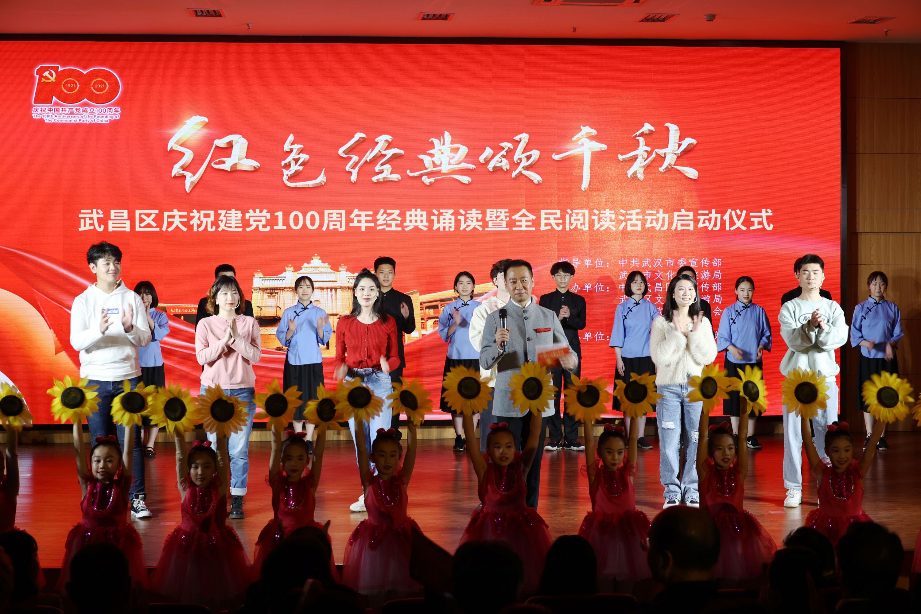 3个以“武汉”为名的大学、中学、小学的学生是本次活动的主要表演者与活动参与者,武汉大学、武汉中学、武汉小学的学生们通过一个个折射历史背景的文艺节目,穿越百年“登上”召开中共一大的南湖红船,体味毛泽东主席在武昌写下《菩萨蛮·黄鹤楼》时的迷惘与希望,拨开迷雾走进真实的中共五大,见证抗战初期武汉的抗日救亡运动以及轰轰烈烈的献金运动,“三代同堂”的同学们上了一堂特殊生动的党史教育课。