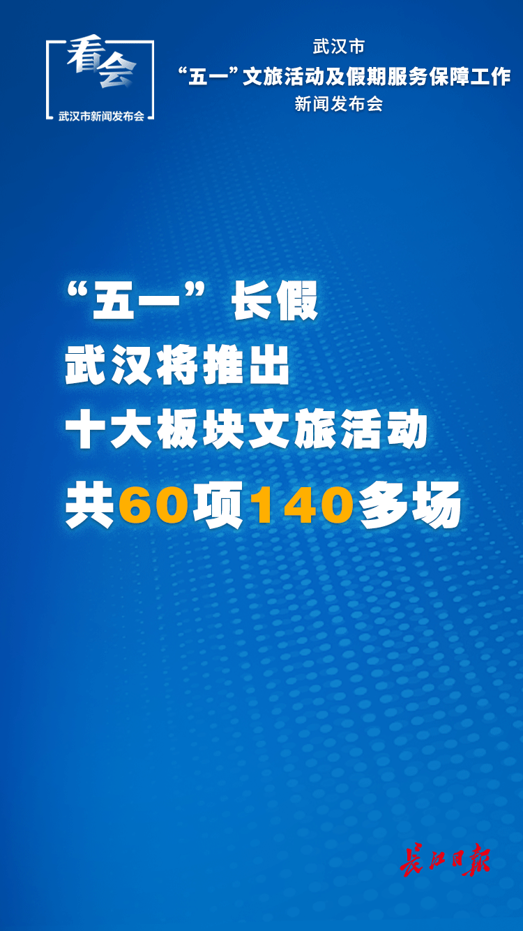 长江日报4月23日讯 23日,武汉市人民政府新闻办公室召开武汉市“五一”文旅活动及假期服务保障工作新闻发布会。