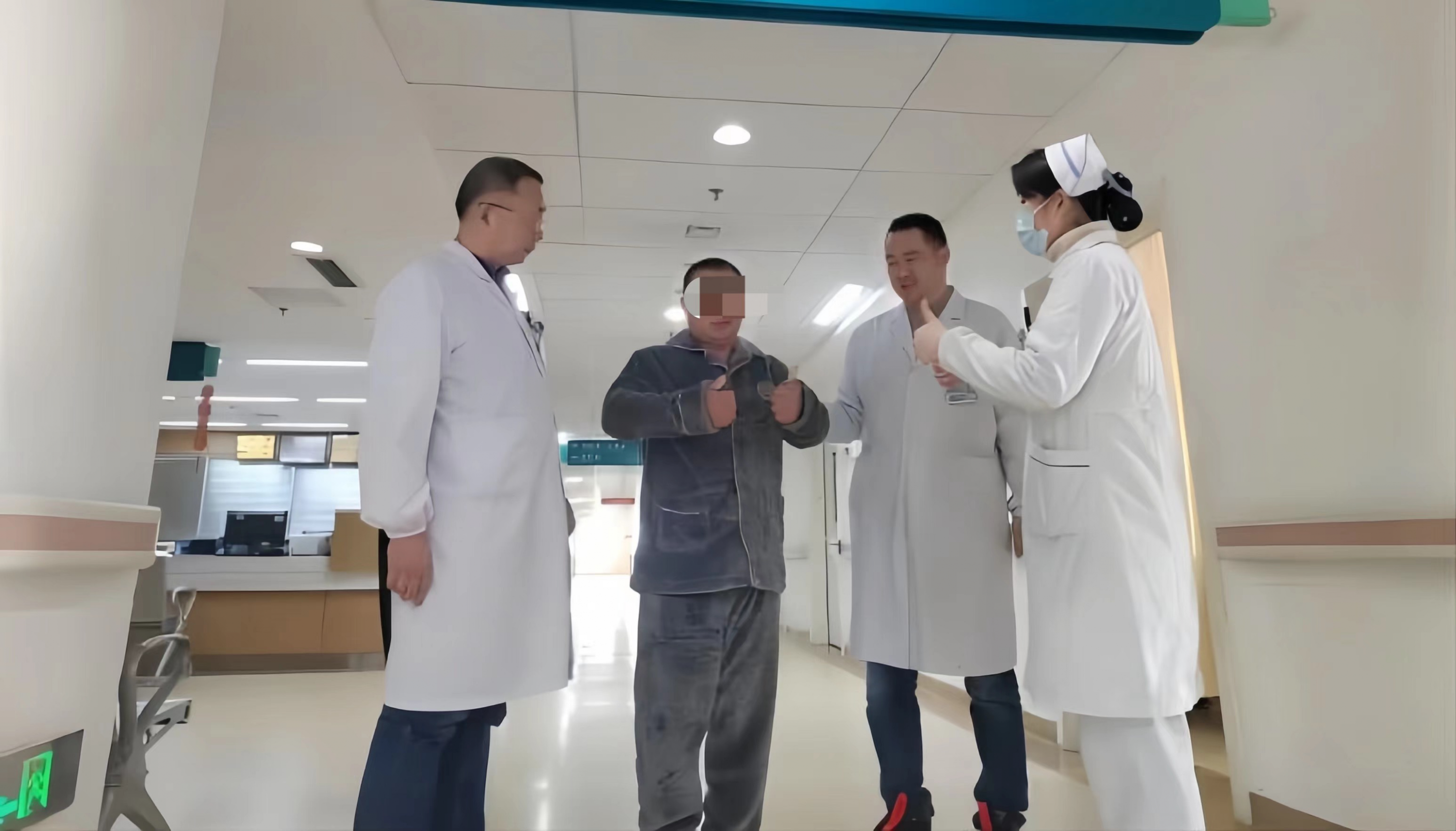 术后,医护人员指导患者功能锻炼,为年前康复出院做准备。