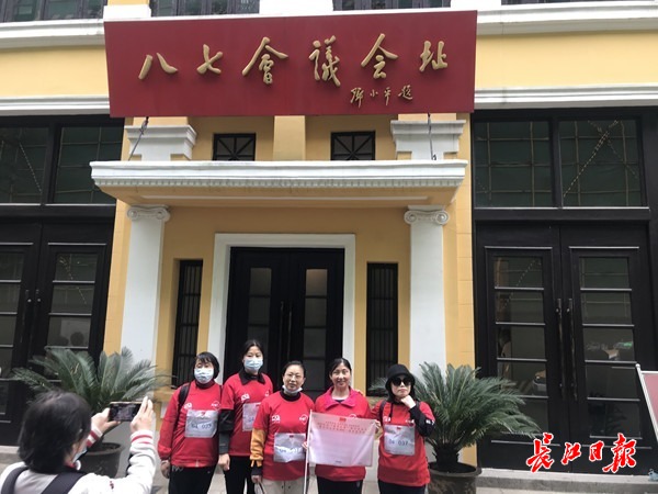 八七会议会址前签到合影。 长江日报记者周满珍 摄