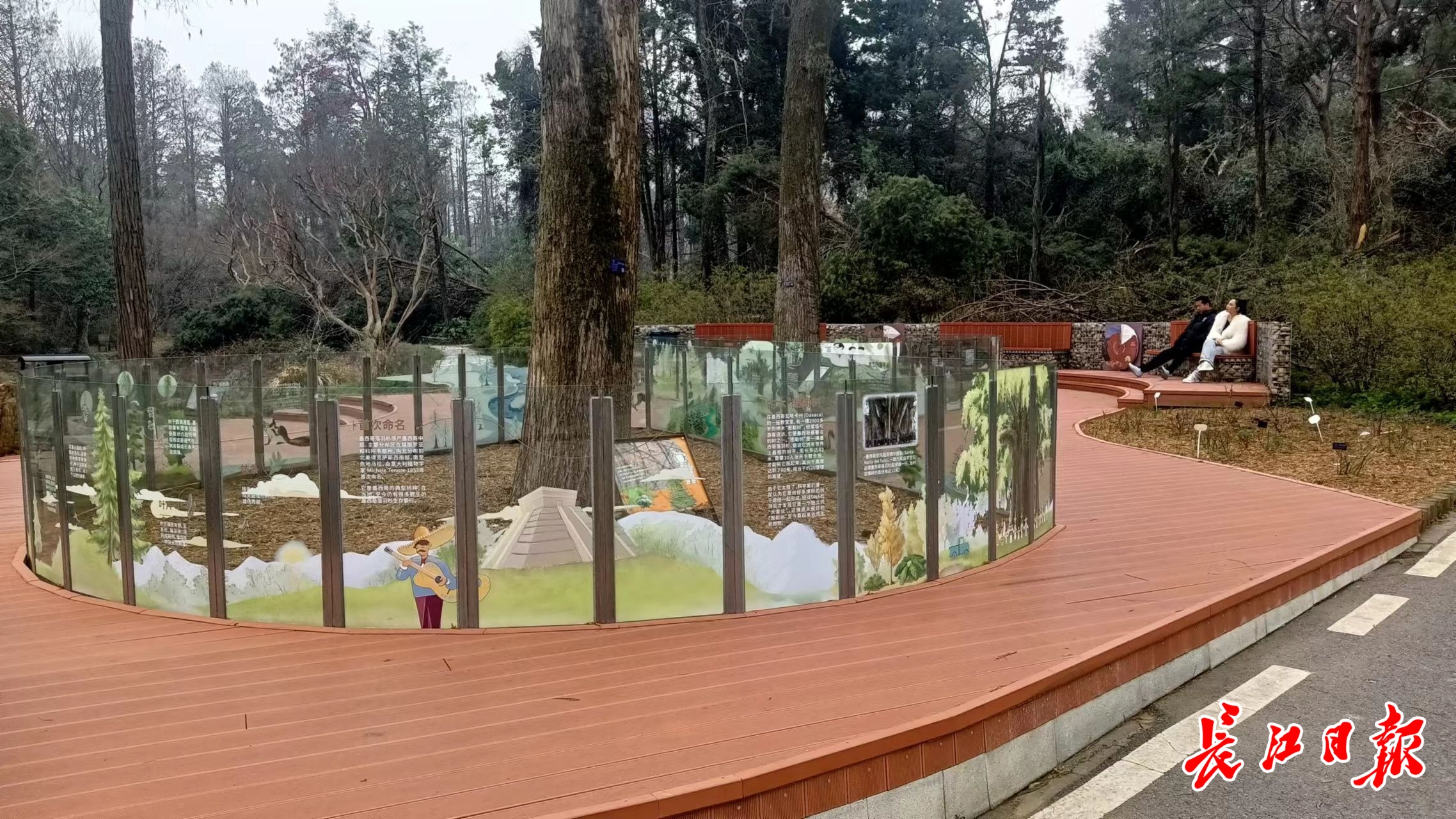 武汉植物园内的一处玻璃护栏涂上了科普图案。 记者李爱华 摄