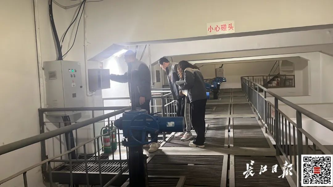 天津路排水站工作人员检查机组设备。记者杨丝涵 摄
