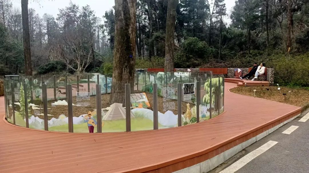 武汉植物园内的一处玻璃护栏涂上了科普图案。记者李爱华 摄
