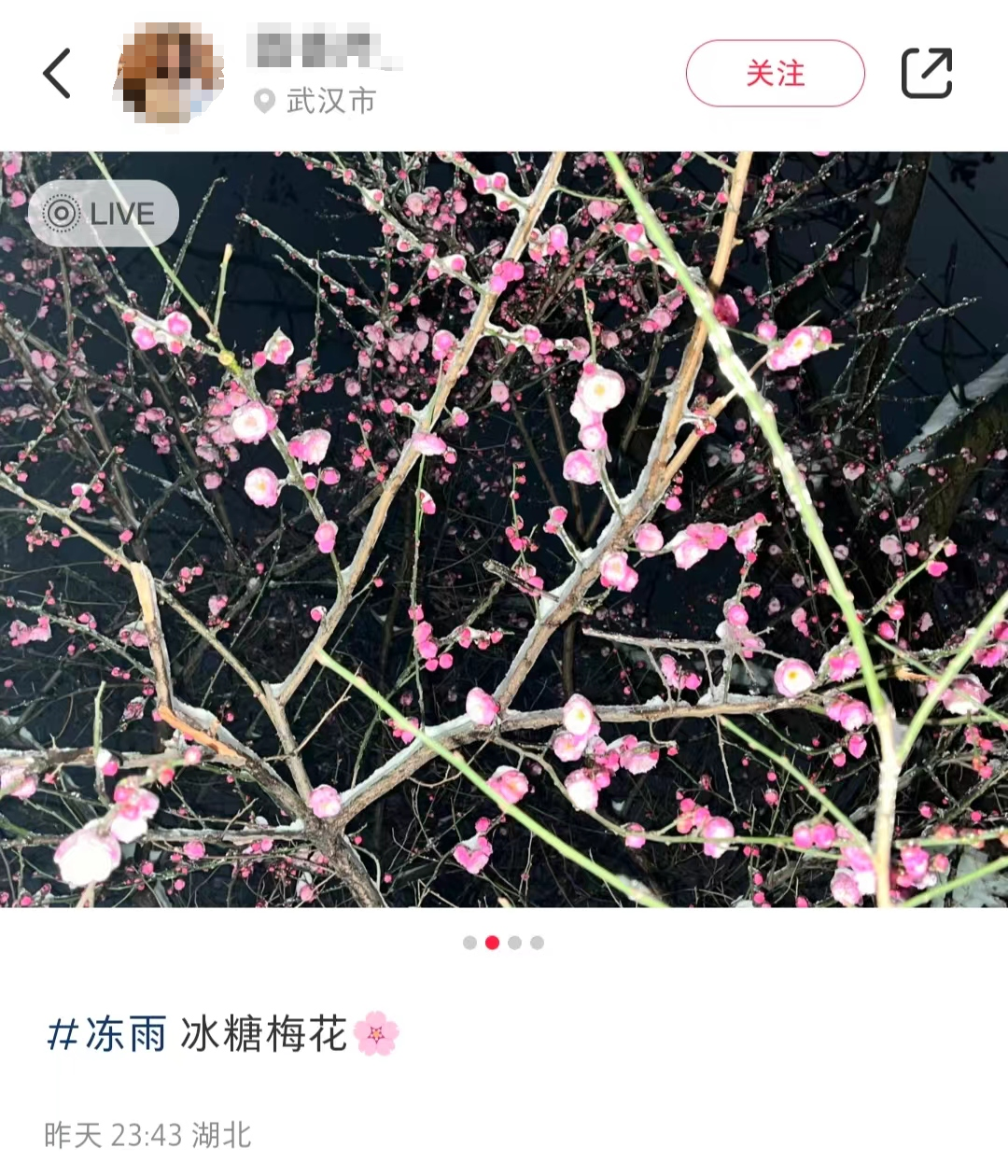 拍到的冻雨中的梅花