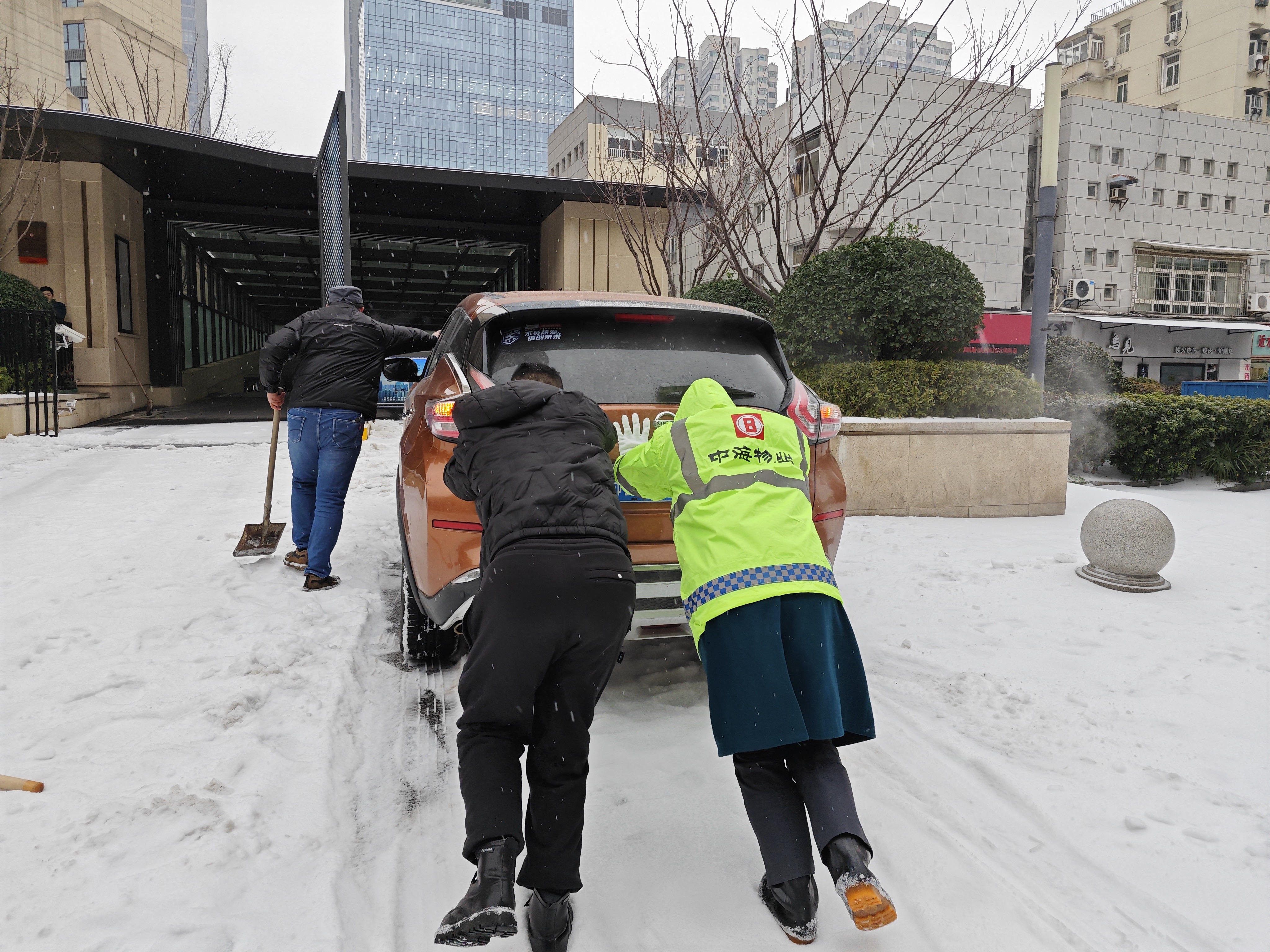 长江日报大武汉客户端2月22日讯(记者杨荣峰)卢先生怎么也想不到,自己爱车享受免费停车的第一天,居然是被物业工作人员推进地库的。21日18时,中海万松九里小区地库未售车位开始对业主免费开放,22日一大早,业主卢先生将爱车驶入小区地库,享受免费停车,未料车辆打滑动弹不得,物业公司工作人员一边铲雪一边推车,最终将卢先生的车推进了停车场。
