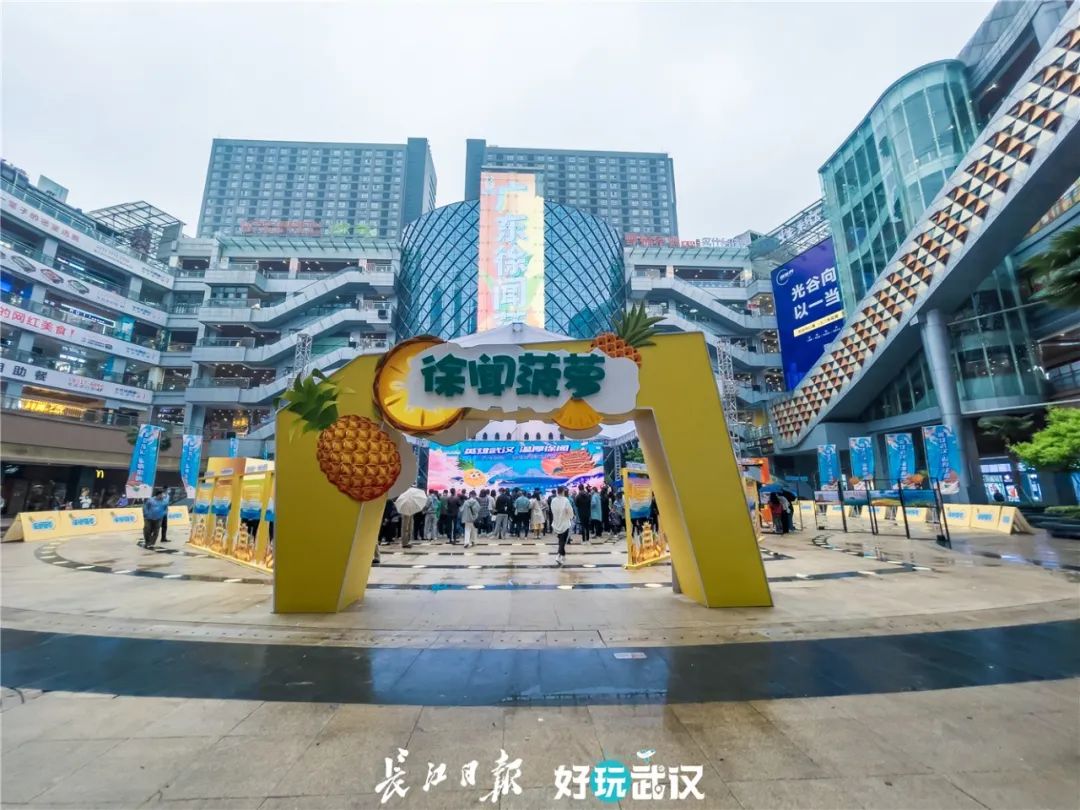24日在光谷的活动现场,来自徐闻的新鲜菠萝和菠萝美食迎来大量市民驻足品鉴。