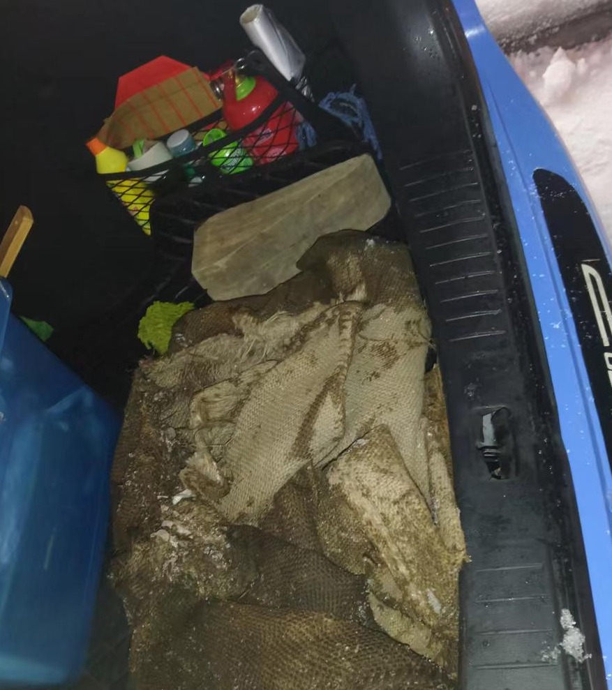 看着这一场景,刘国庆马上想到后备箱备有麻袋和三角木,于是上前跟公交司机建议,用麻袋垫在车轮底下,增加摩擦系数,然后再发动车辆,公交司机心领神会。