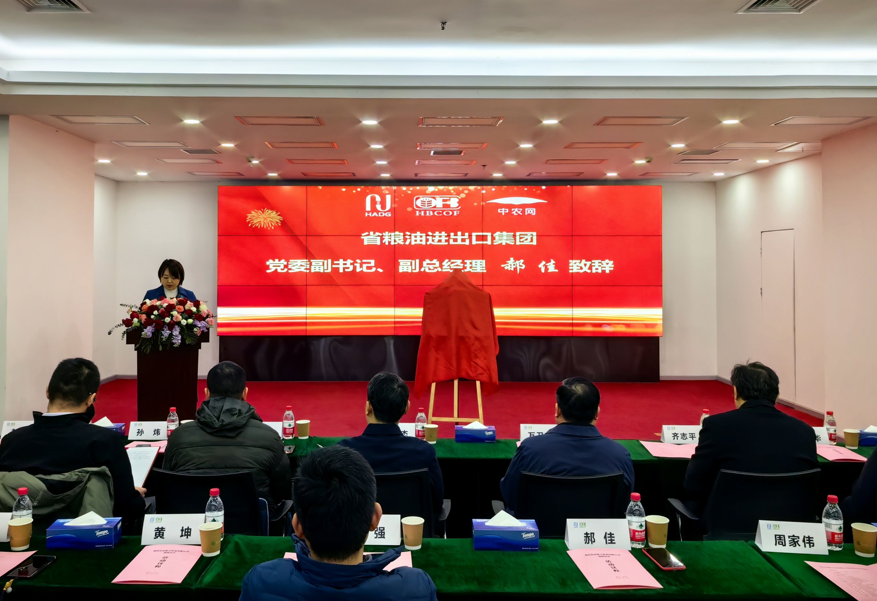 由湖北省粮油食品进出口集团与深圳市中农网有限公司共同出资组建的湖北农业数字贸易有限公司揭牌成立。 (通讯员姚诗悦 供图)