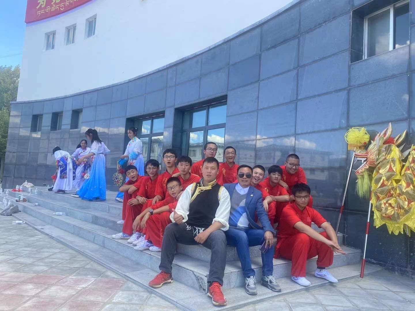 2021年11月,舞龙队的孩子们穿着藏族服饰,陈武带他们前往西藏山南市参加比赛。