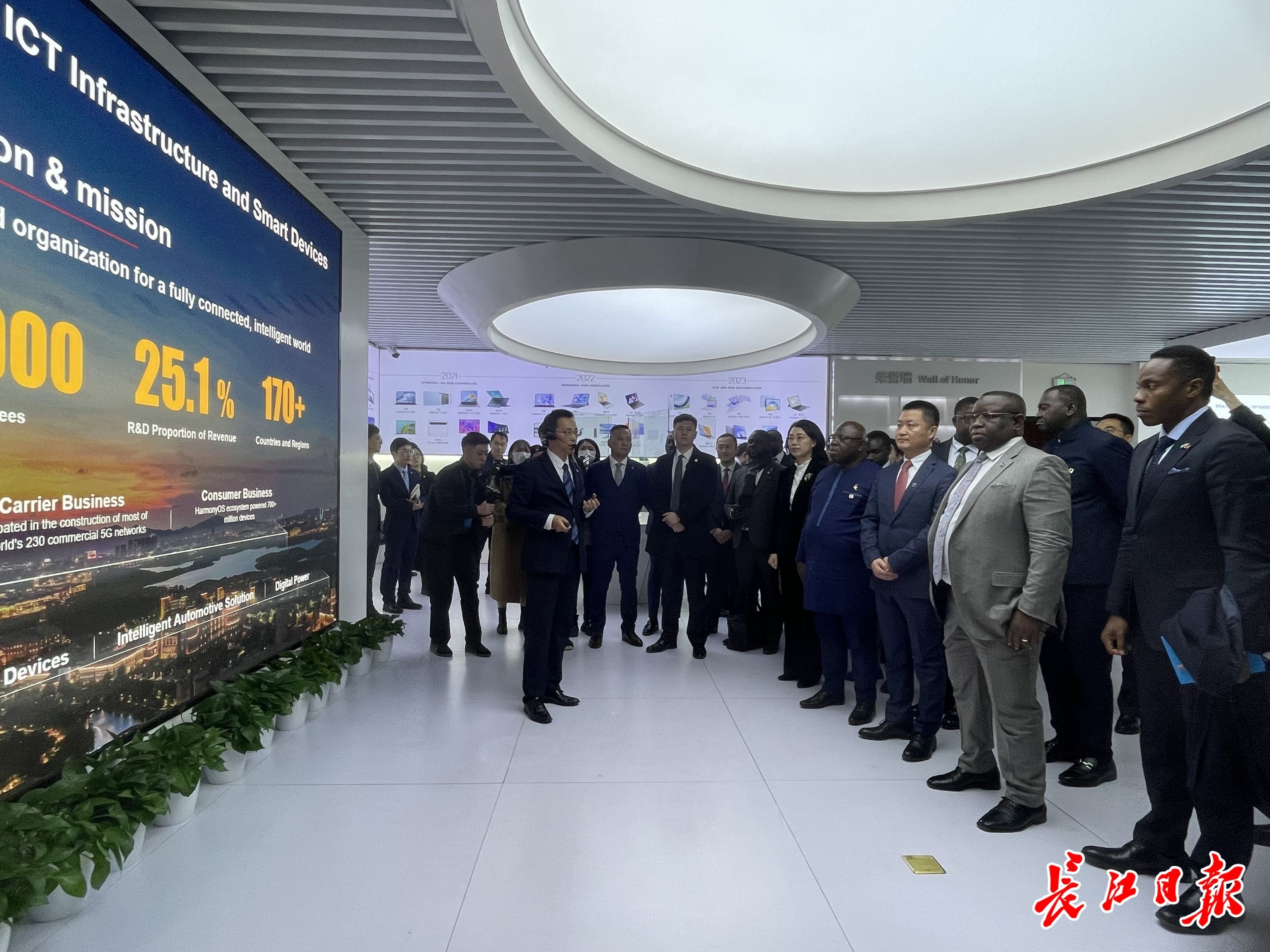 比奥总统参观华为武汉研究所。记者郑晓安 摄