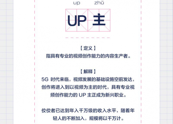 新技术也在重构、催生着新职业。如随着移动互联网技术的成熟,视频内容的基础设施更加发达,UP主(uploader,原指在视频网站、论坛、ftp站点上传视频音频文件的人),从最初的纯兴趣导向,逐渐演化成为对专业视频创作者的统称,具有了更职业性、专业化的定义。