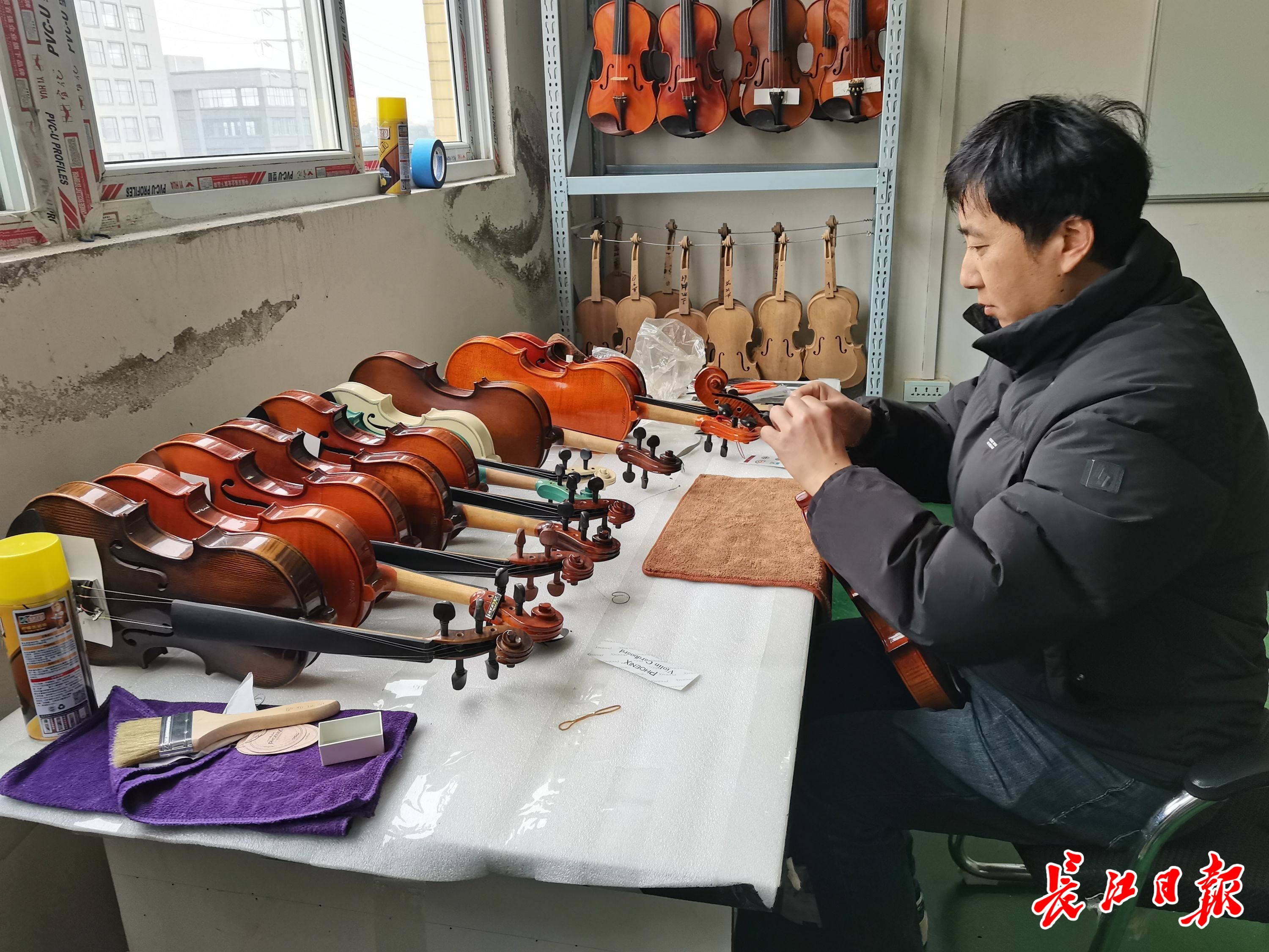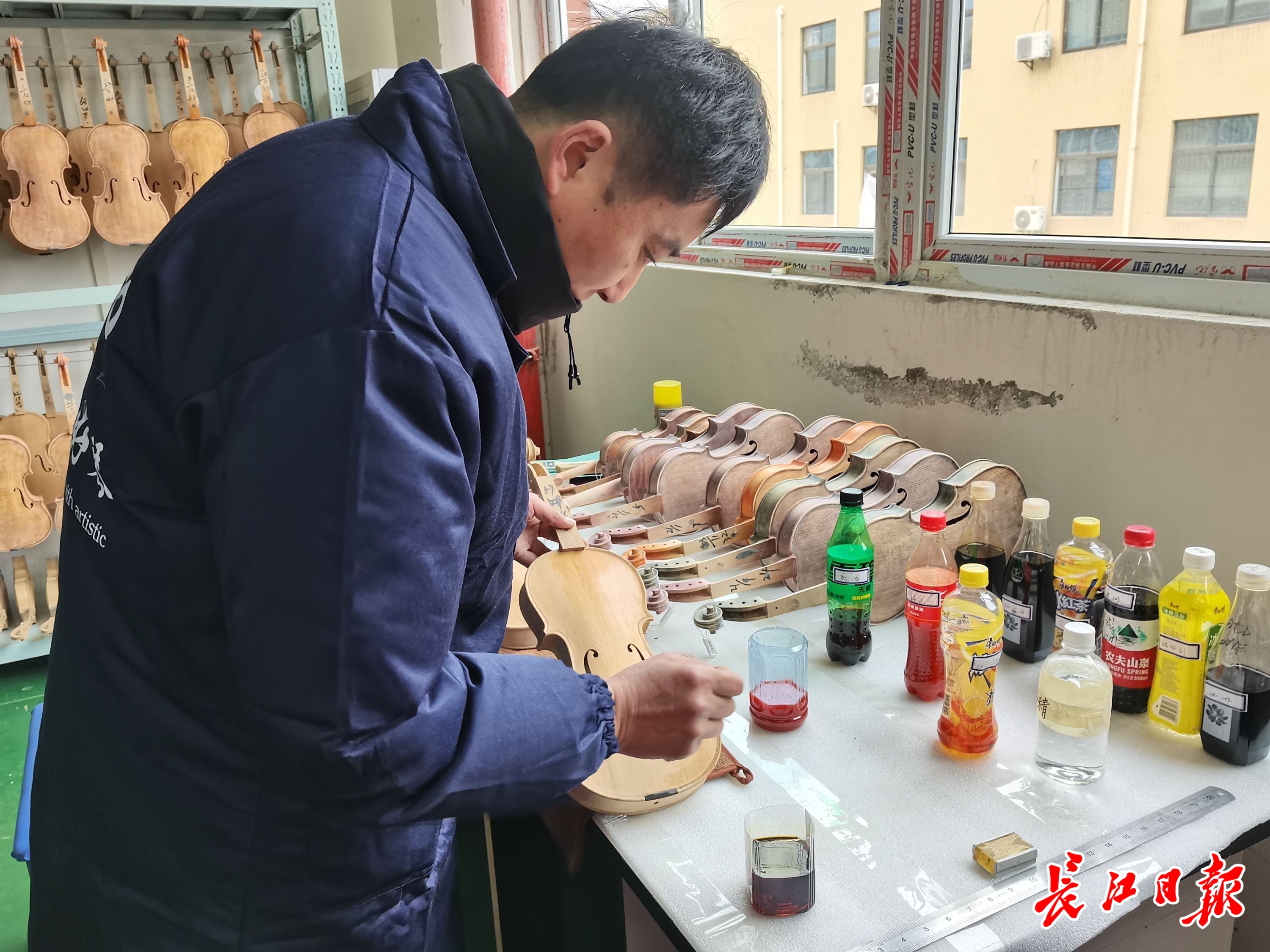 “何勇、何亚昀来自被誉为‘中国提琴之乡’的江苏泰兴,两位制琴师在武汉研发制作样品,拿到订单后,再把样品发回泰兴批量生产。”钱军建告诉记者,2013年,他在江苏南通创办一诺国际乐器公司,从事海外乐器品牌代工和出口业务。2017年,钱军建和武汉的合作伙伴共同创办了一诺云科技,在汉布局乐器研发中心和样品试制车间。近两年,其生产的乐器年出口额超过1亿元人民币。去年,他们推出了自己的提琴品牌菲妮克斯,目前公司已制作完成十余把手工小提琴,得到了客户的好评。
