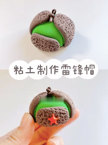 用黏土捏出雷锋帽