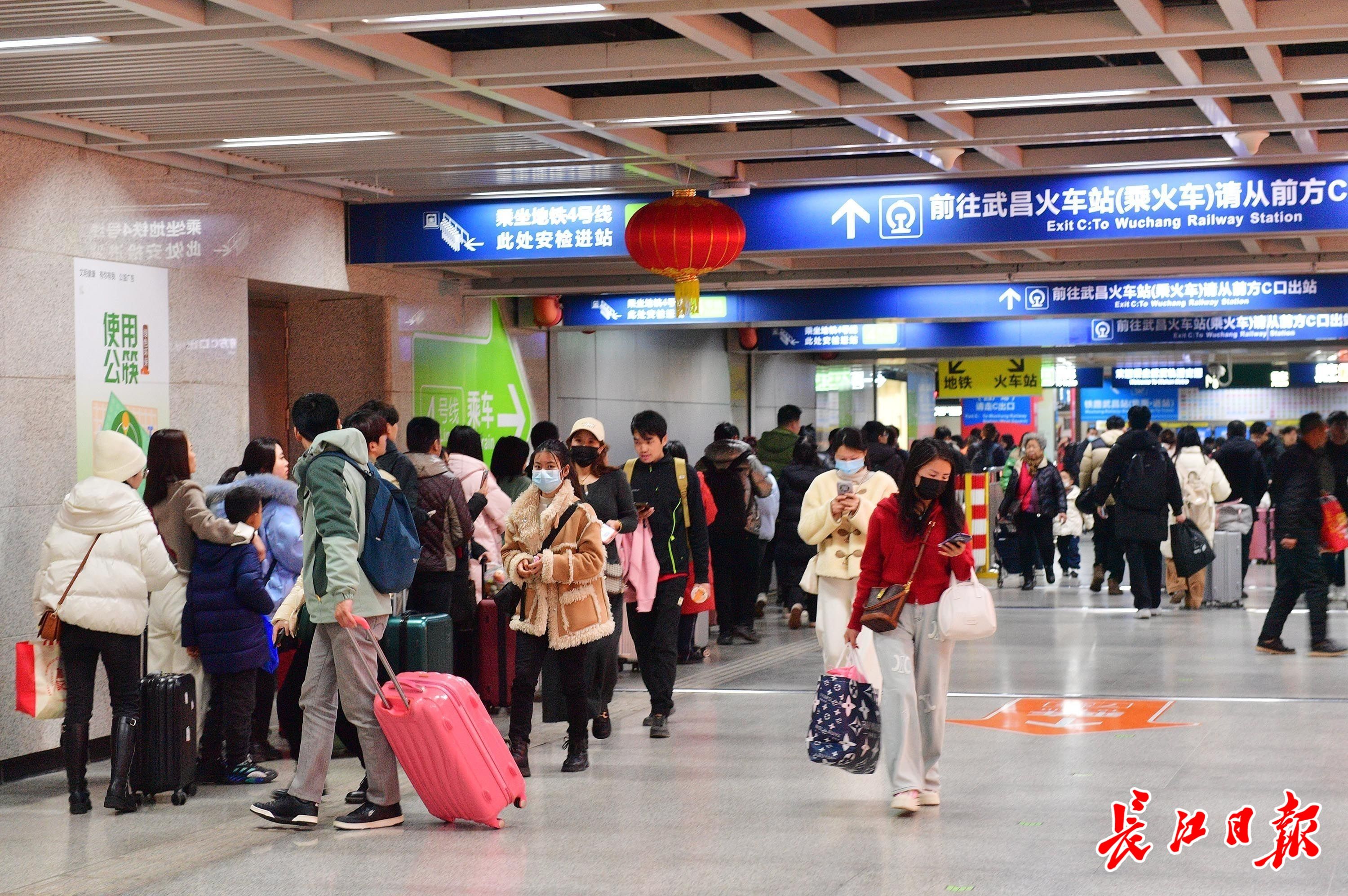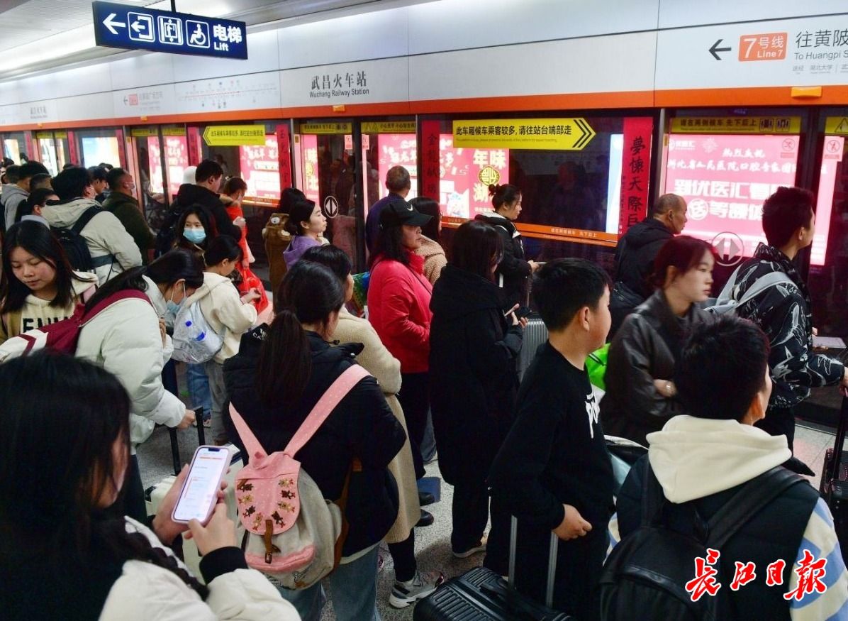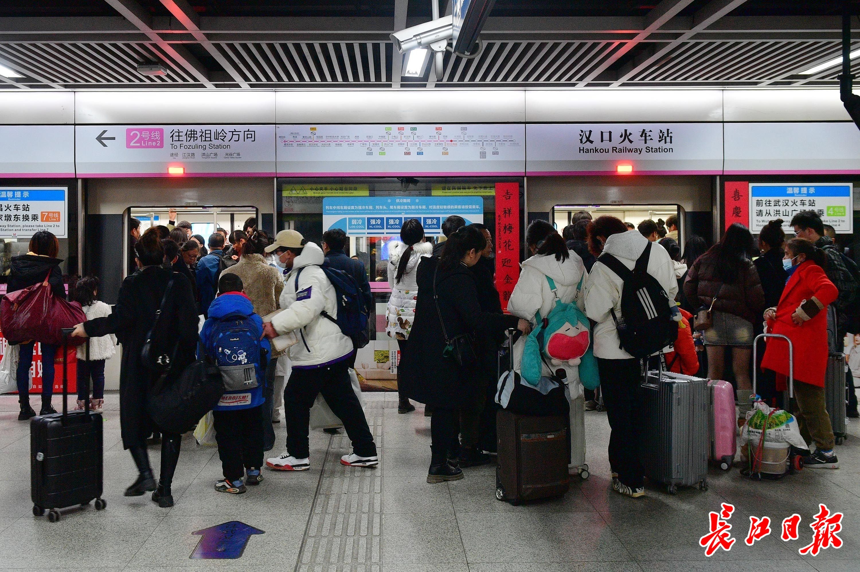 春节假期结束前,汉口火车站地铁站迎来返程客流高峰。