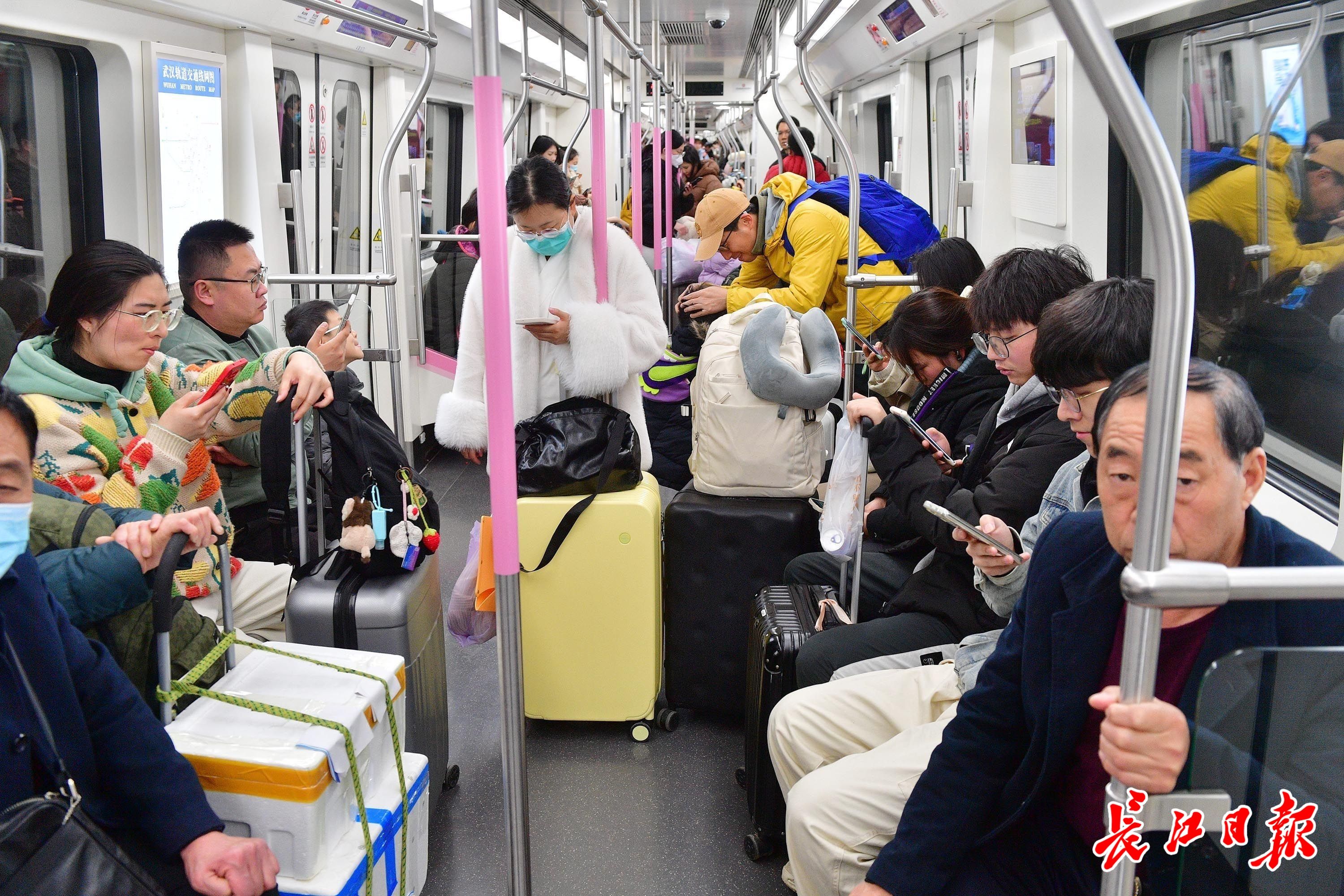 春运期间,旅客在武昌火车站乘坐地铁7号线。