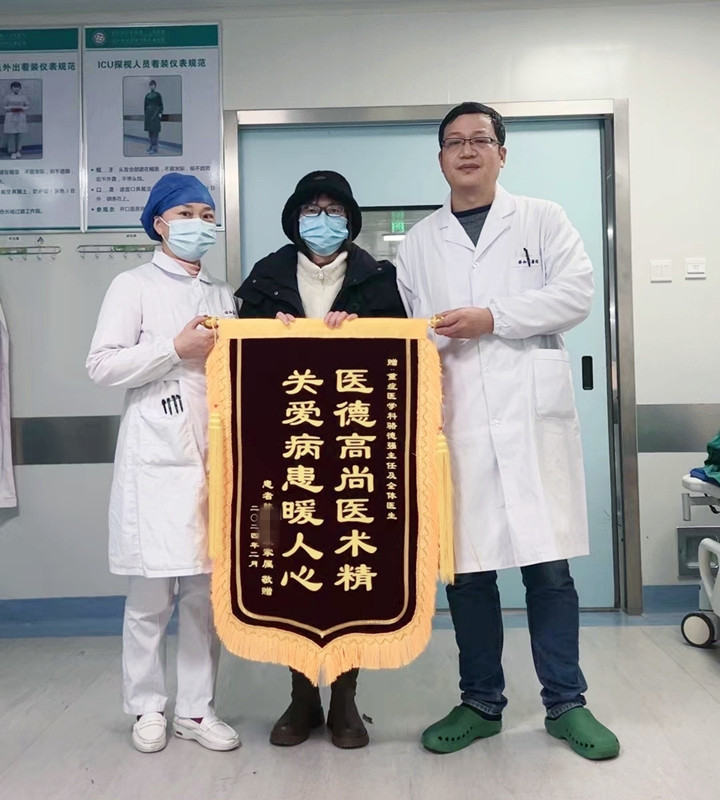 “当时,真的没抱多大希望,太感谢你们了!”转普通病房前夕,韩爷爷的家属专门定制“医德高尚医术精 关爱病患暖人心”的锦旗,送到该院重症医学科医护人员手中,表达感激之情。