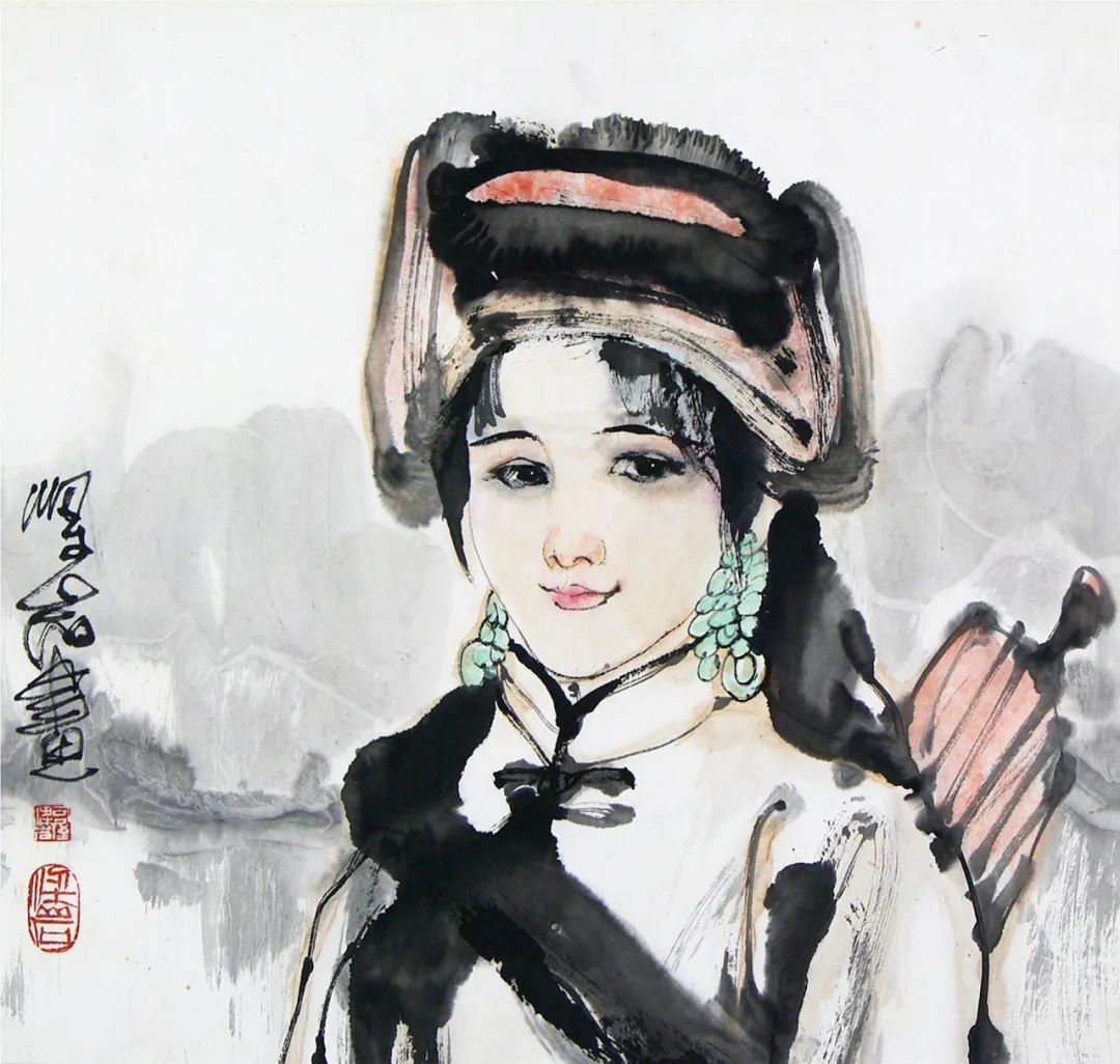 江汉大学艺术学院院长王心耀此次的参展作品纸本扇面《藏女图》。主办方供图