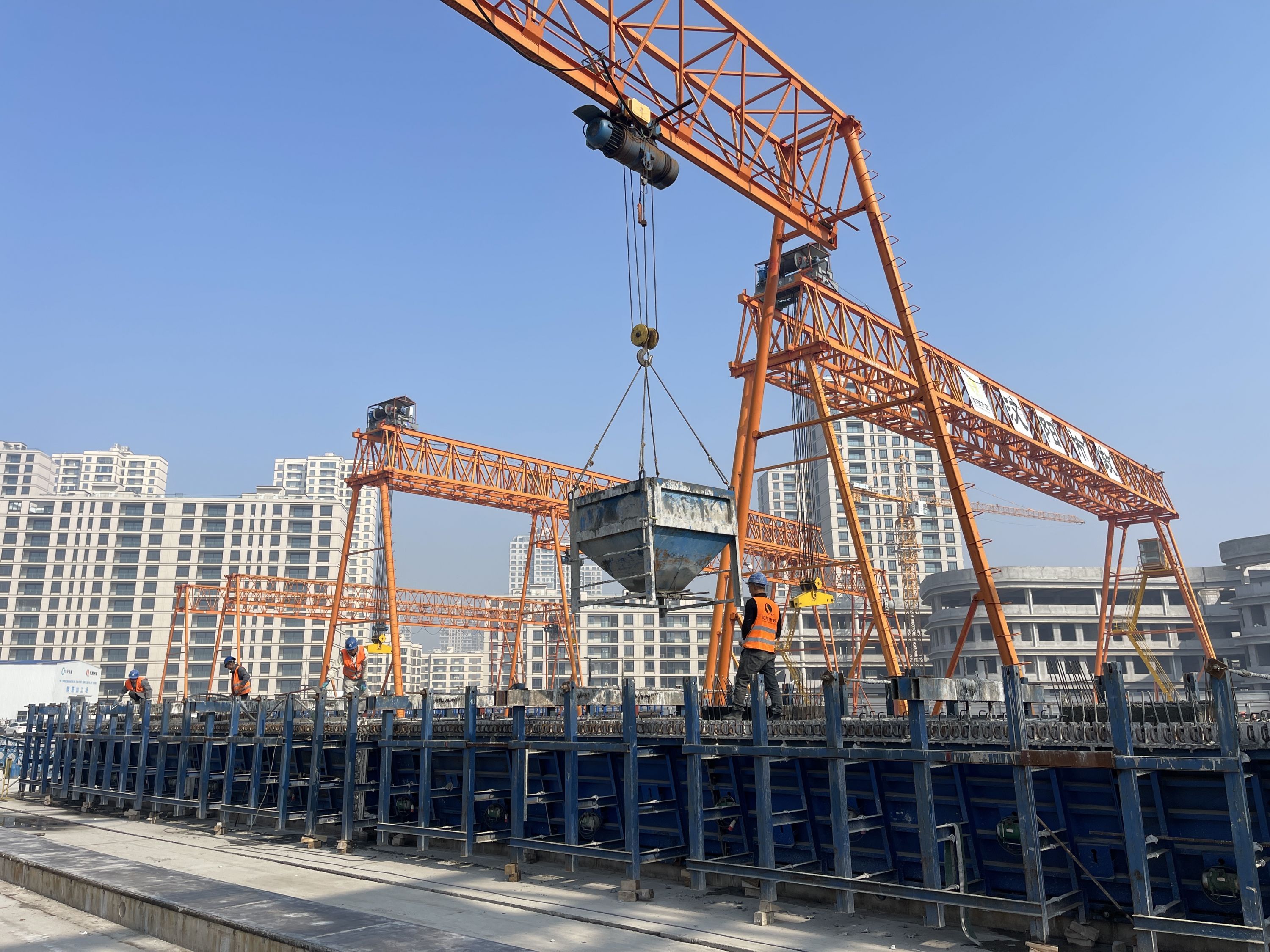 “我们春节期间也没有停工,为确保工期进度,主线高架小箱梁生产工作采取不停工的方式进行。”该负责人介绍,春节期间配置生产班组和管理人员40余人,同时设立安全应急值守专班,每日对现场动火作业、易燃易爆材料堆放等进行巡视巡查,确保节日期间生产安全。目前,该项目整体复产返岗人数已达420余人,完成各类返岗、进场交底,以及大型机械设备、危大工程等相关作业内容的安全检查工作。