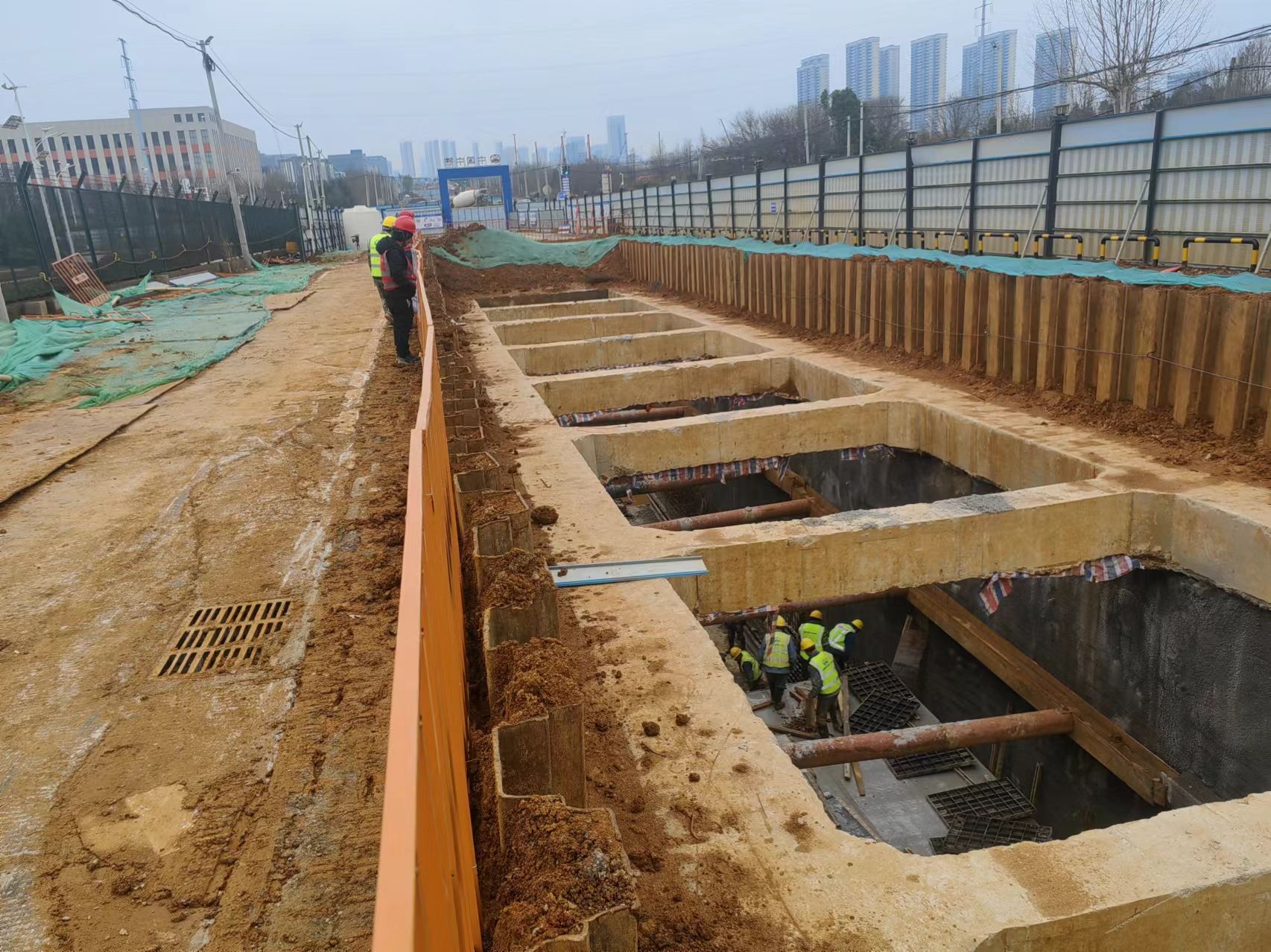 同一天,在武汉新城中心片区产业提升项目(市民中心)现场,近百名建设人员进行基坑支护立柱桩施工、冠梁浇筑、土方转运等。