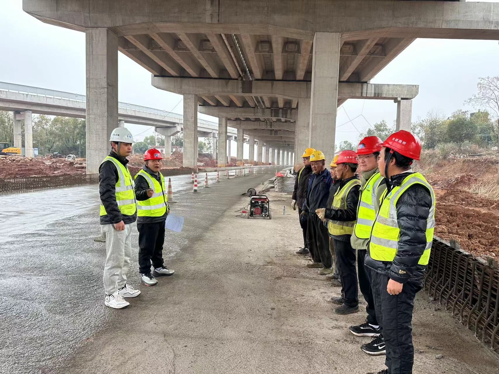 此时,在高新五路项目工地,现场施工及管理人员近百人正在进行佛祖岭西路—佛祖岭一路沉井顶管收尾施工,光谷三路—光谷四路箱涵施工,高科园路—光谷七路围挡倒边作业,光谷六路交叉路口人行道铺装等。复工前,葛化建设公司组织参建各方进行复工复产安全隐患排查,并对现场排查出的问题进行整改。