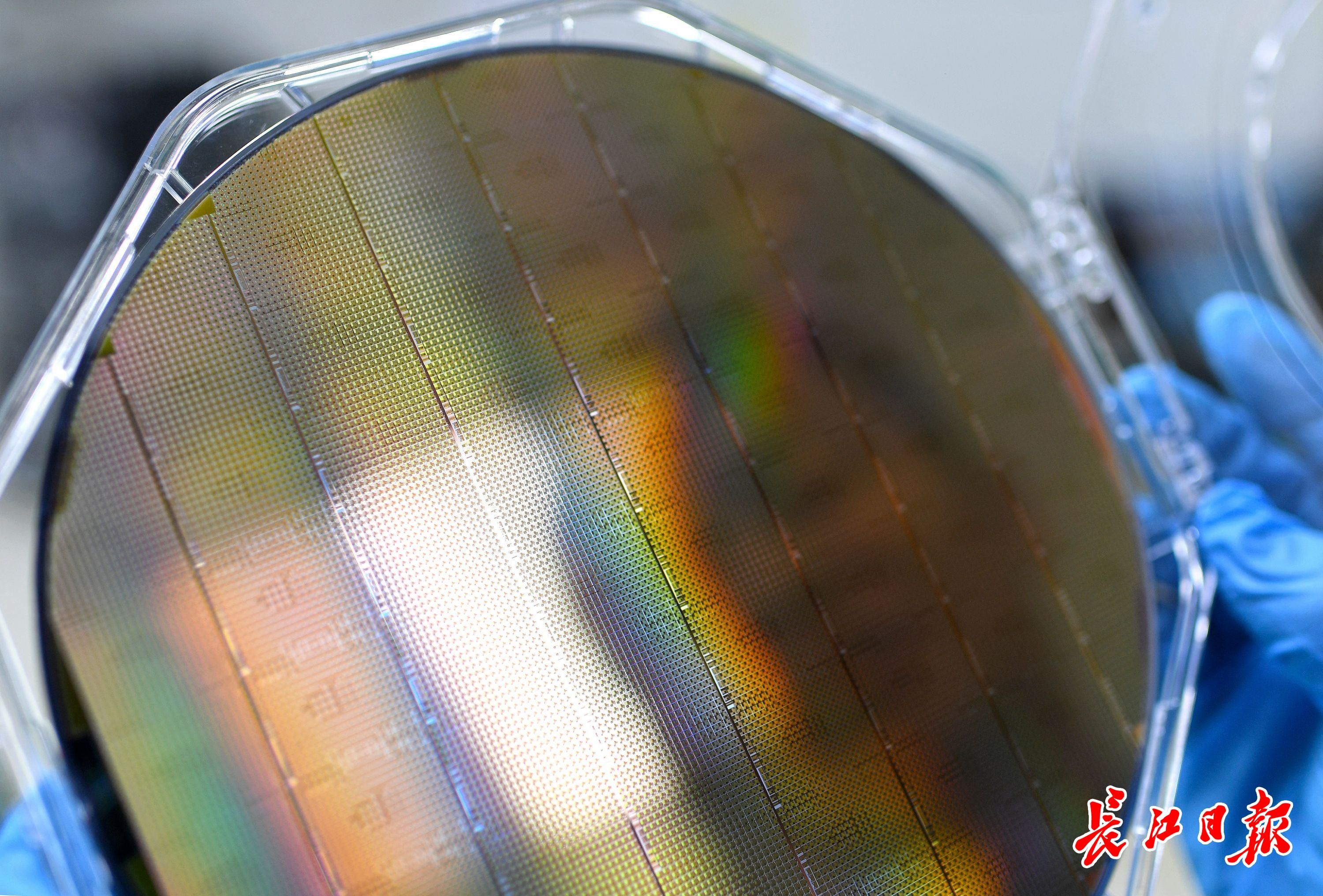 胶体量子点成像芯片12寸CMOS晶圆,目前已完成小试、中试,可大面积加工。长江日报记者周超 摄