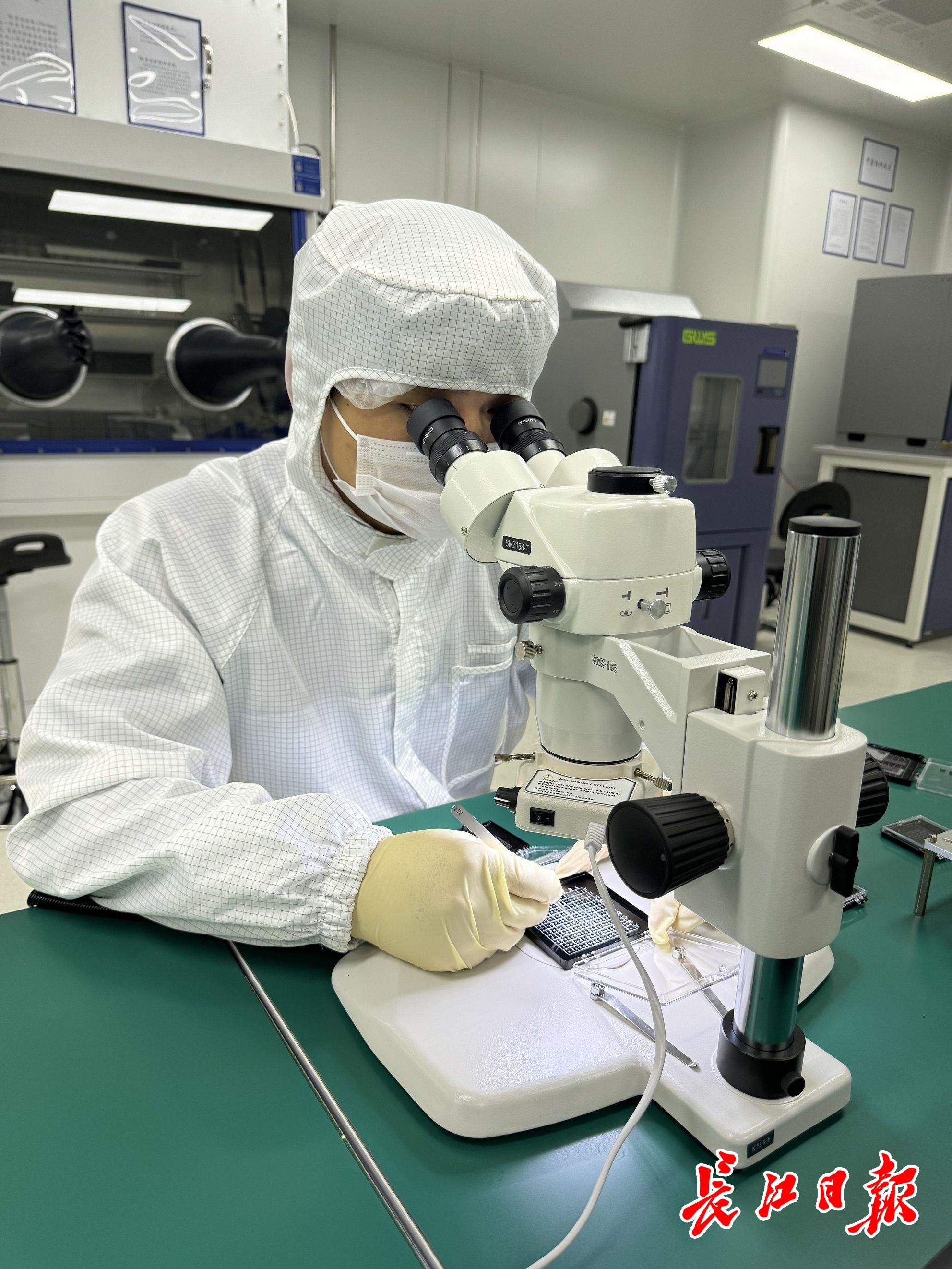 光谷实验室硬件工程师孙磊正在进行芯片分选和封装。长江日报记者陈洁 摄