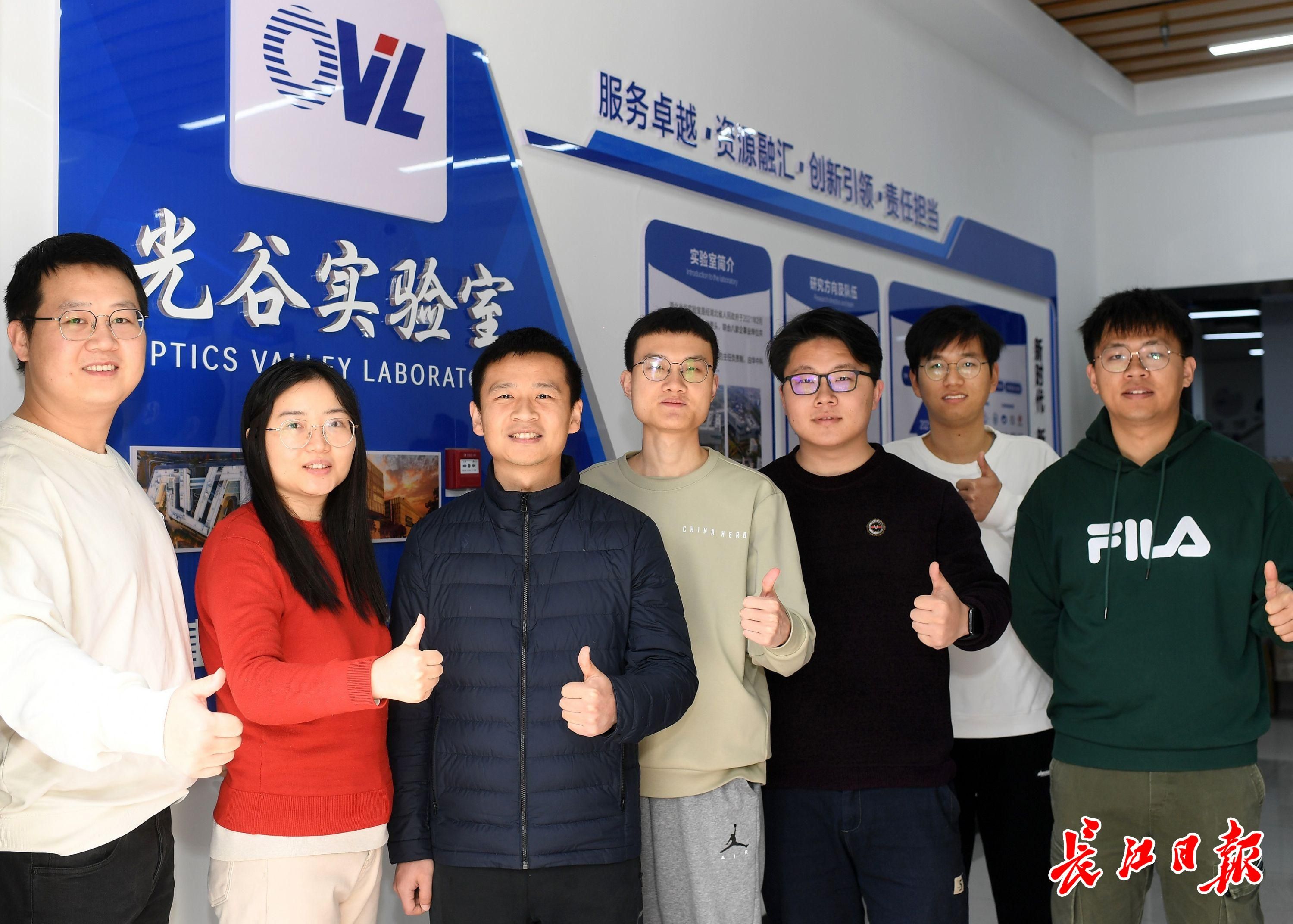高亮(左三)和团队部分成员合影。 团队成员80%以上为硕博高材生。长江日报记者周超 摄
