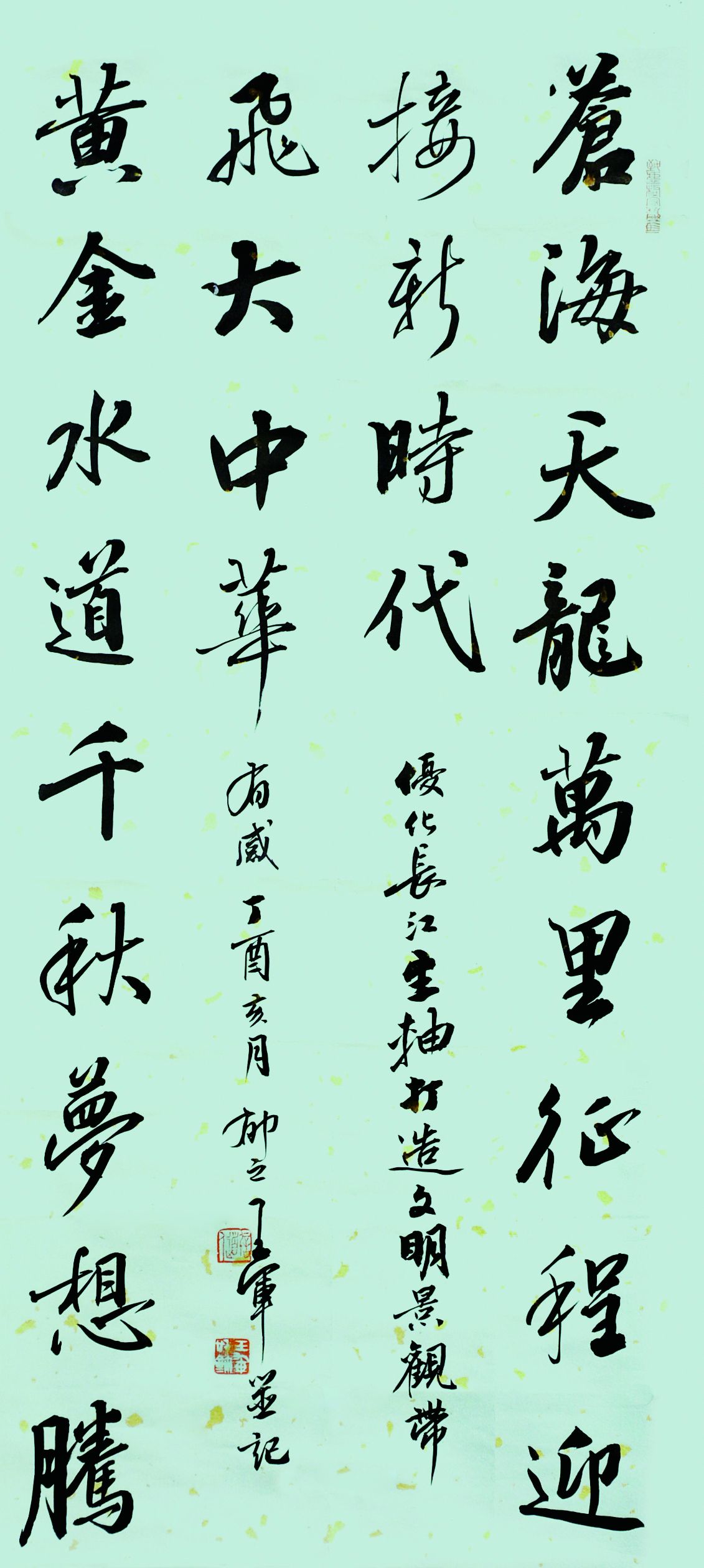 万里奔涌掀巨澜,鹤归楚泽颂尧天;