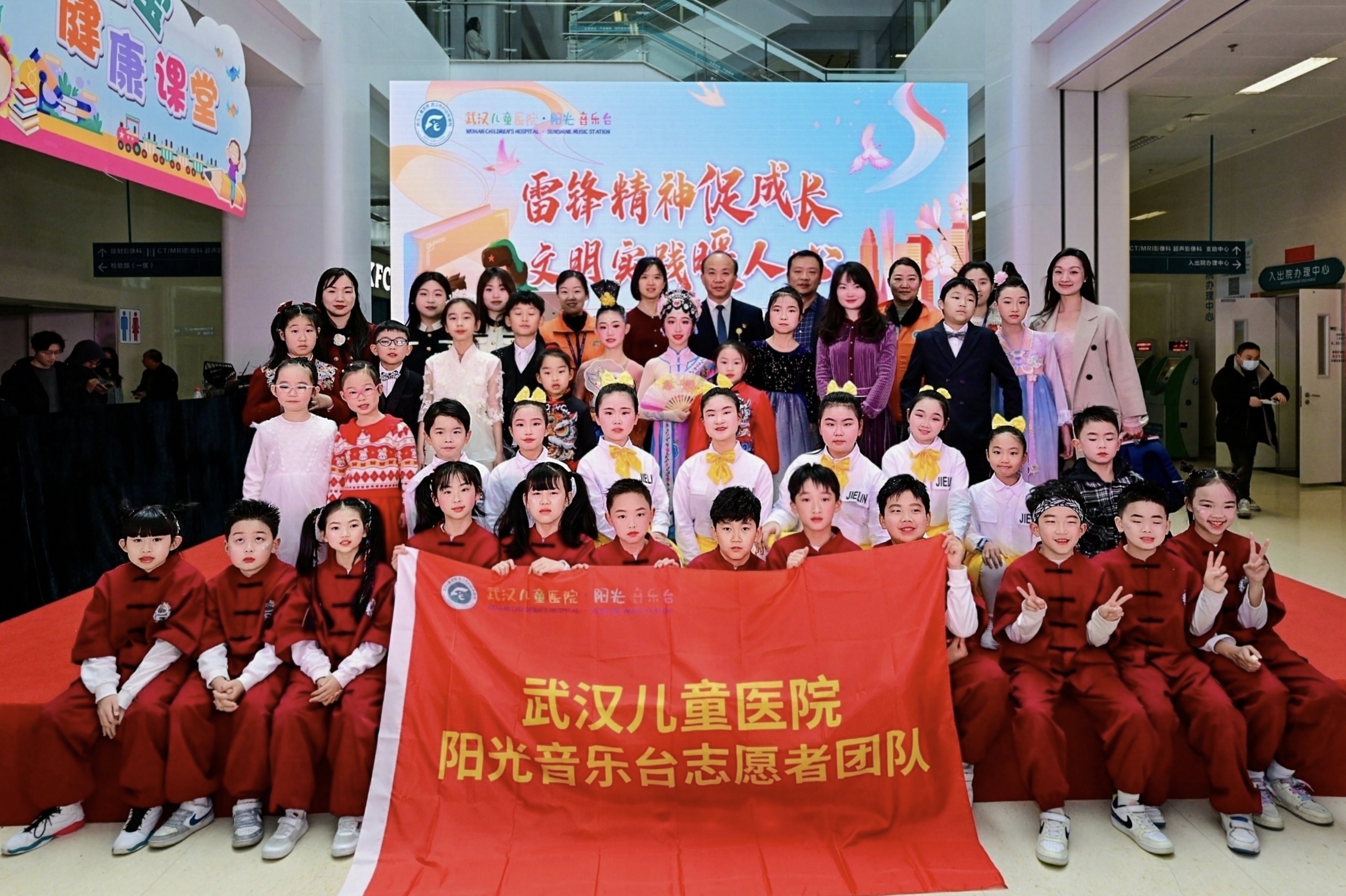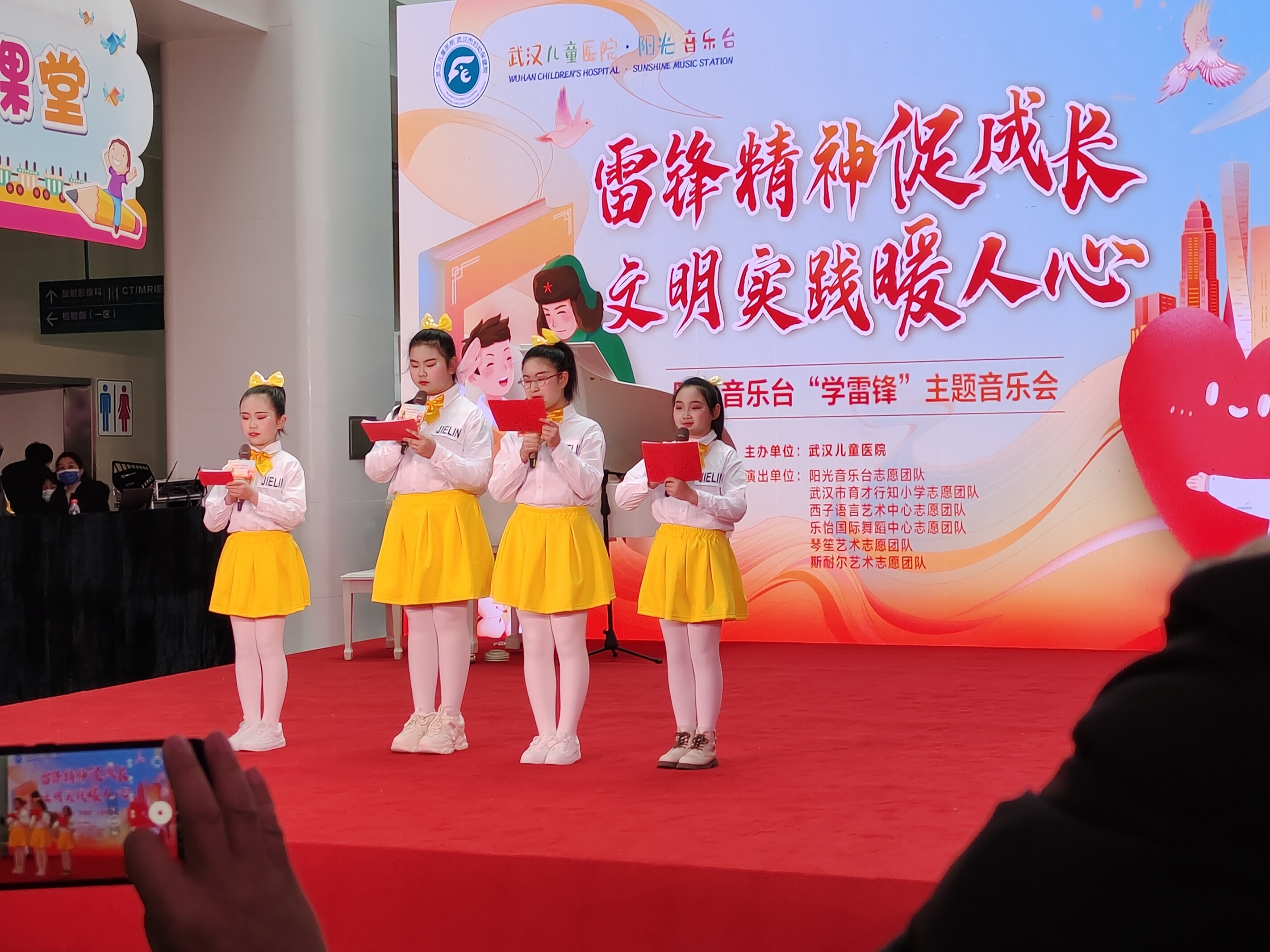据介绍,当天前来表演的小志愿者分别来自武汉儿童医院阳光音乐台、武汉市育才行知小学、琴笙艺术志愿团队、西子语言艺术中心志愿团队、乐怡国际舞蹈中心志愿团队、斯耐尔艺术志愿团队等。这场以文化艺术志愿服务为特色的“学雷锋”活动吸引了大量前来就诊患儿的驻足聆听,也吸引了周边居民来现场欣赏。