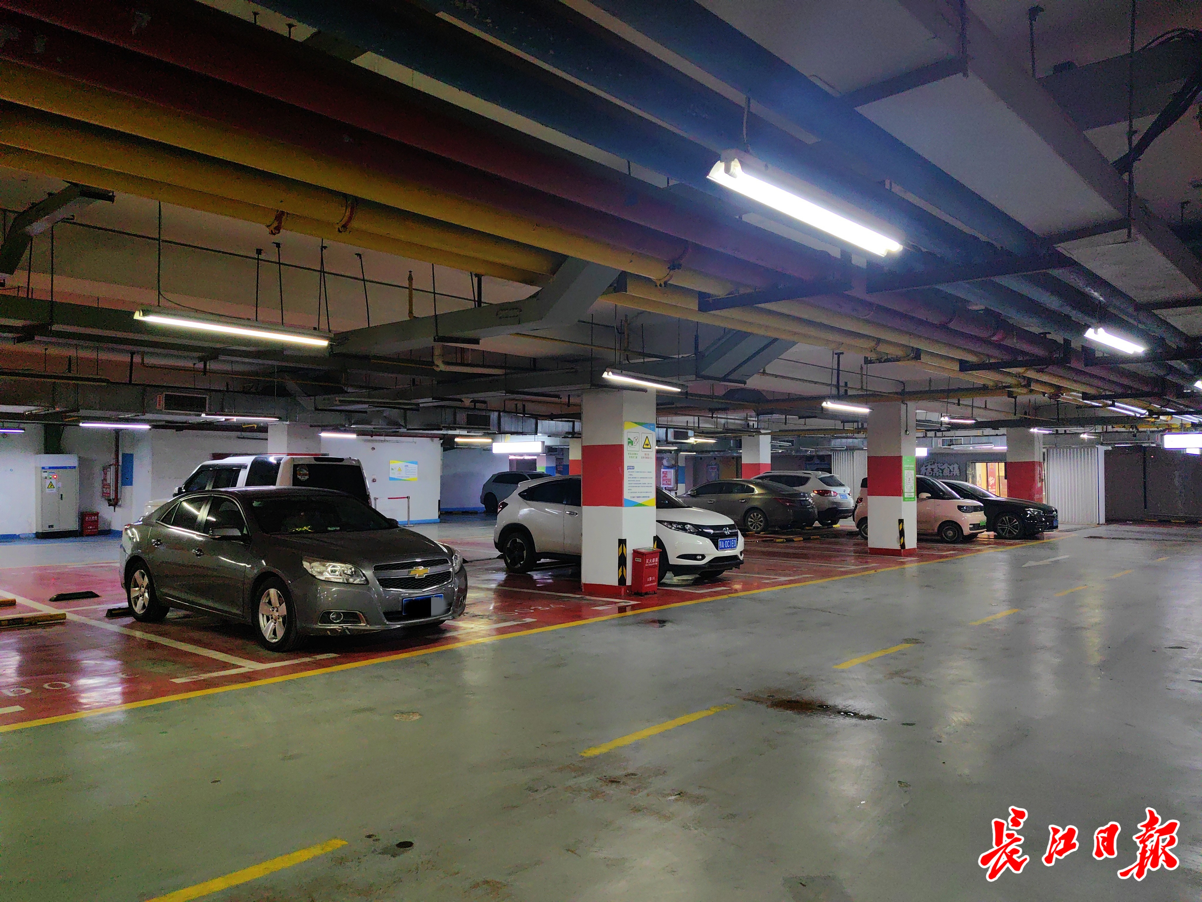 7日晚,部分夜间月卡车辆在汉口城市广场地下停车场有序停放。 记者孙笑天 摄