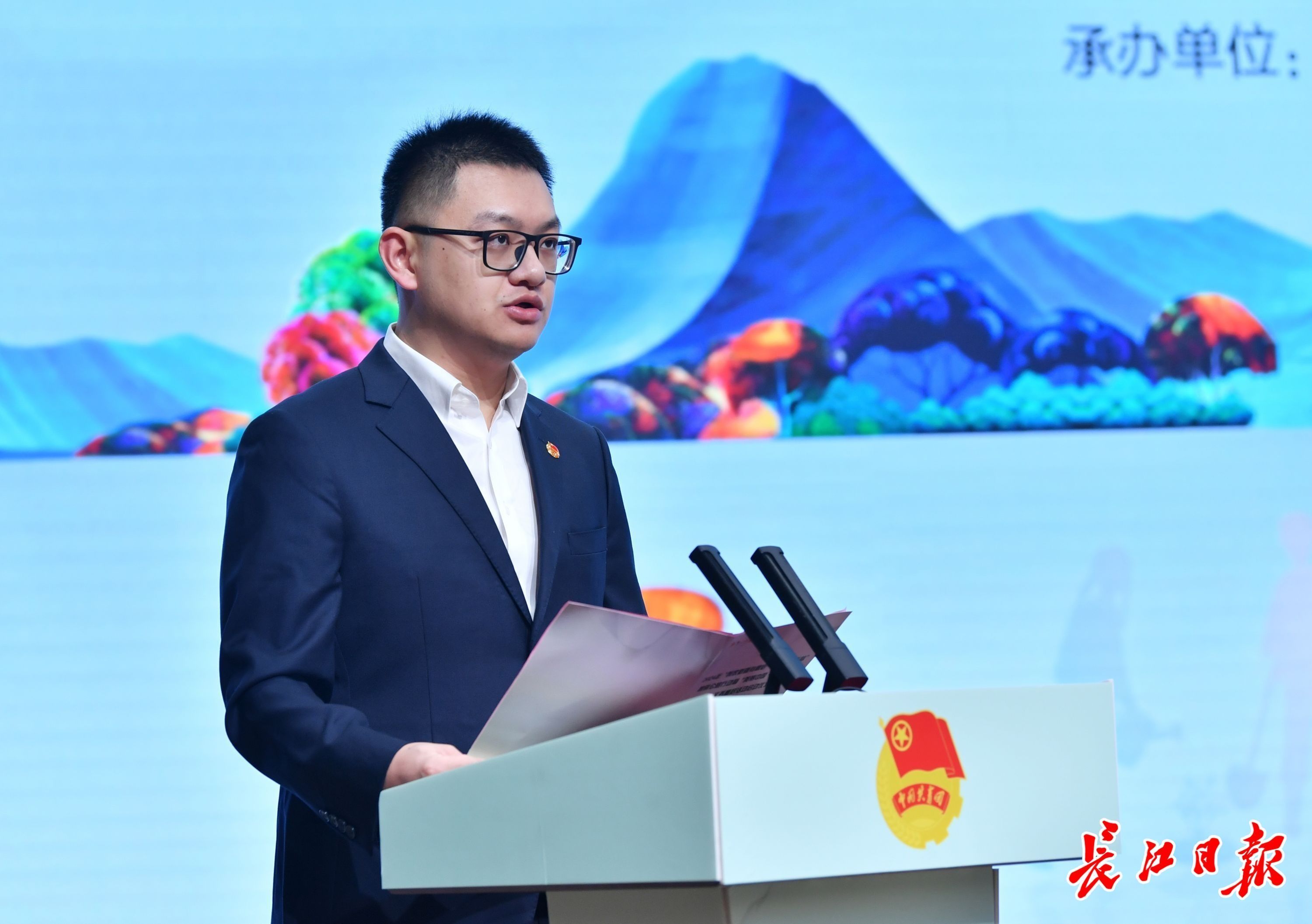 全国优秀团干程先知宣读倡议书。记者喻志勇 摄