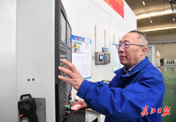 张海鸥在检测用“3D打印锻件技术”打印的飞机起落架。