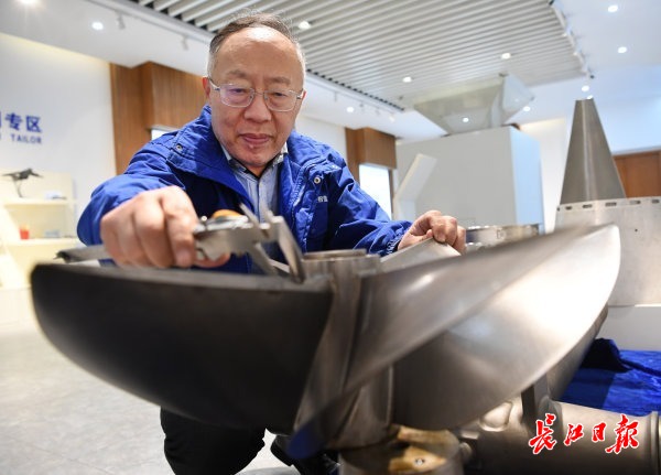 张海鸥教授检测加工的船舶推进器。
