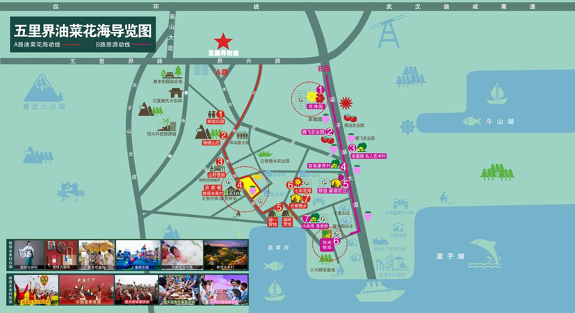 本次油菜花季,主办方围绕“一主两线多点”旅游线路布局,以林语未来村•农家畈为主会场,推出梁子湖大道及李家店路2条线路