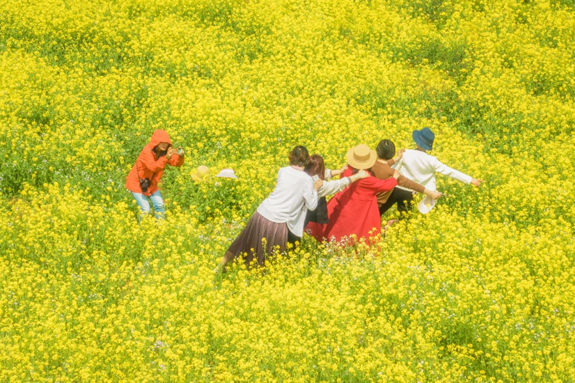 春日踏春游园会、赏粉色油菜花、国潮汉服、手工集市、萌宠互动、酷跑越野、打卡油纸伞长廊,活动期间穿汉服半价赏花游