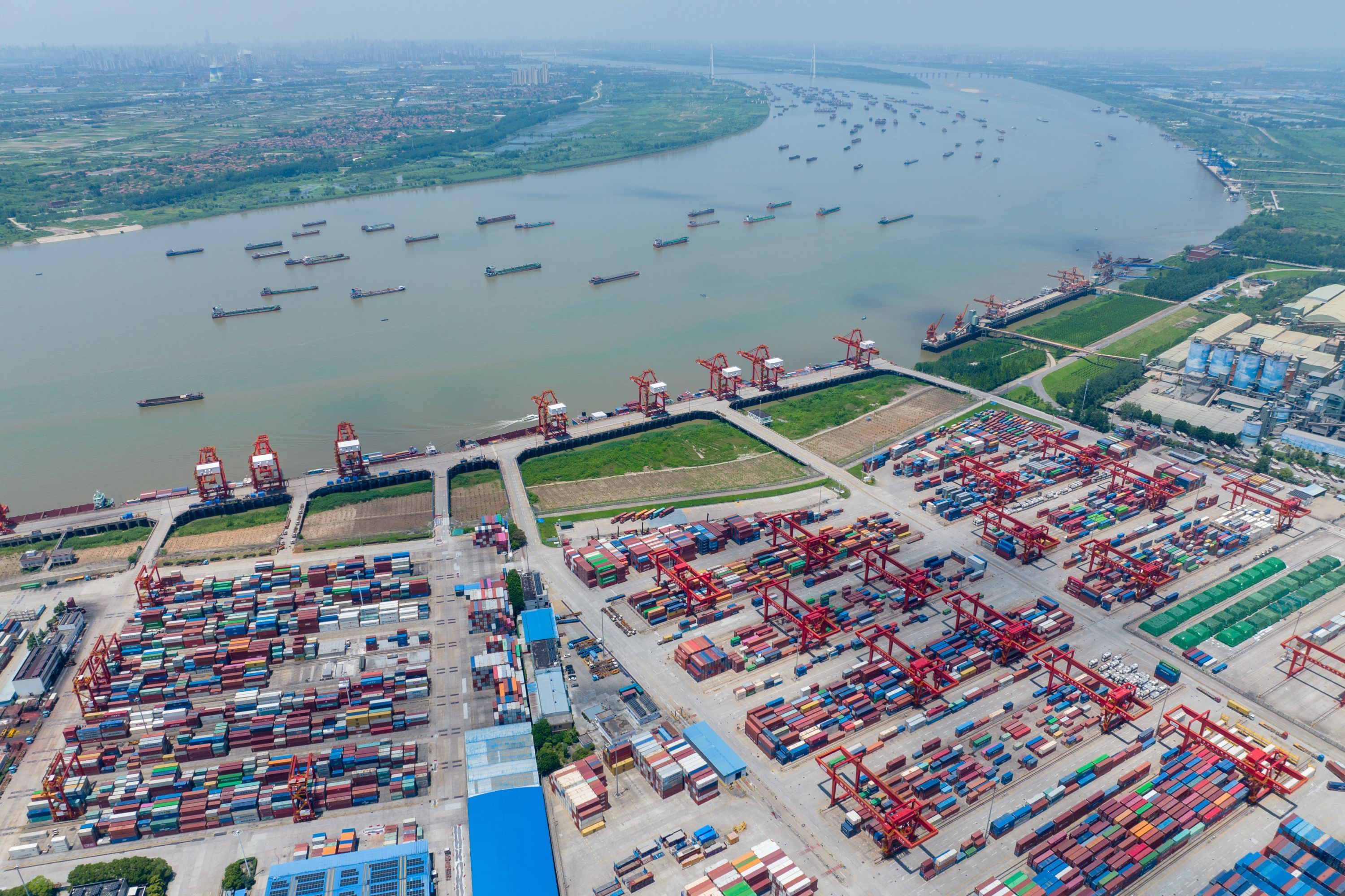 武汉阳逻港一期码头。新华社记者伍志尊 摄