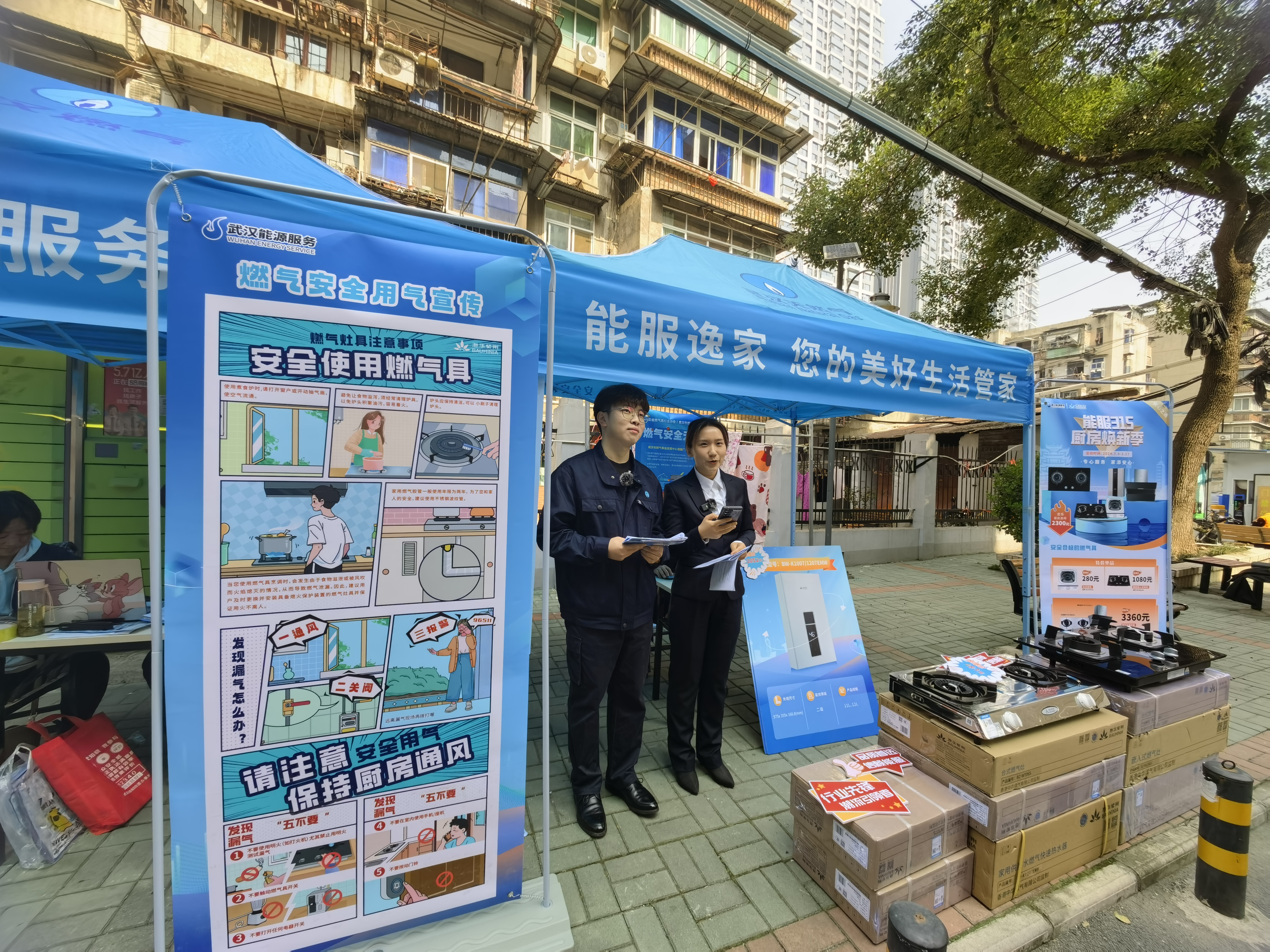 当天,湖北省燃气具行业协会在武汉万象城门前举办燃气安全宣传线下活动,为市民发放燃气安全宣传资料,市能源服务公司工作人员也在现场提供安全咨询服务,解答市民关于厨房安全、燃气用具安装、使用咨询、维修、安检等疑问。