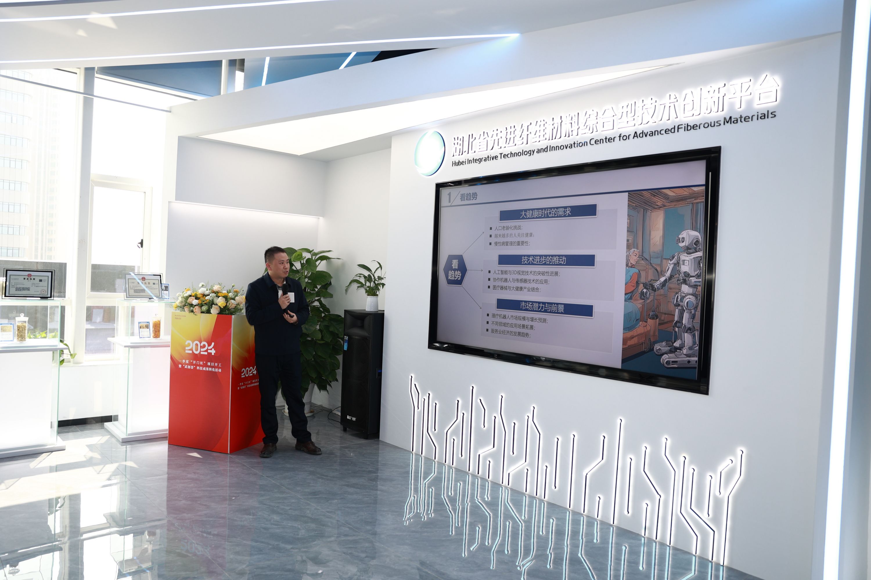 长江日报大武汉客户端3月15日讯(记者栾嘉雯 通讯员郭彩霞) 15日,长江日报记者在湖北省先进纤维材料综合型技术创新平台(以下简称先创平台)举办的2024年一季度“开门红”项目开工暨“武创荟”科技成果转化活动中获悉,去年底签约落户先创平台的武汉赢博健康科技有限公司主要研发生产3D视觉AI智能理疗机器人,其产品将于下半年推向养老院、医疗等机构。