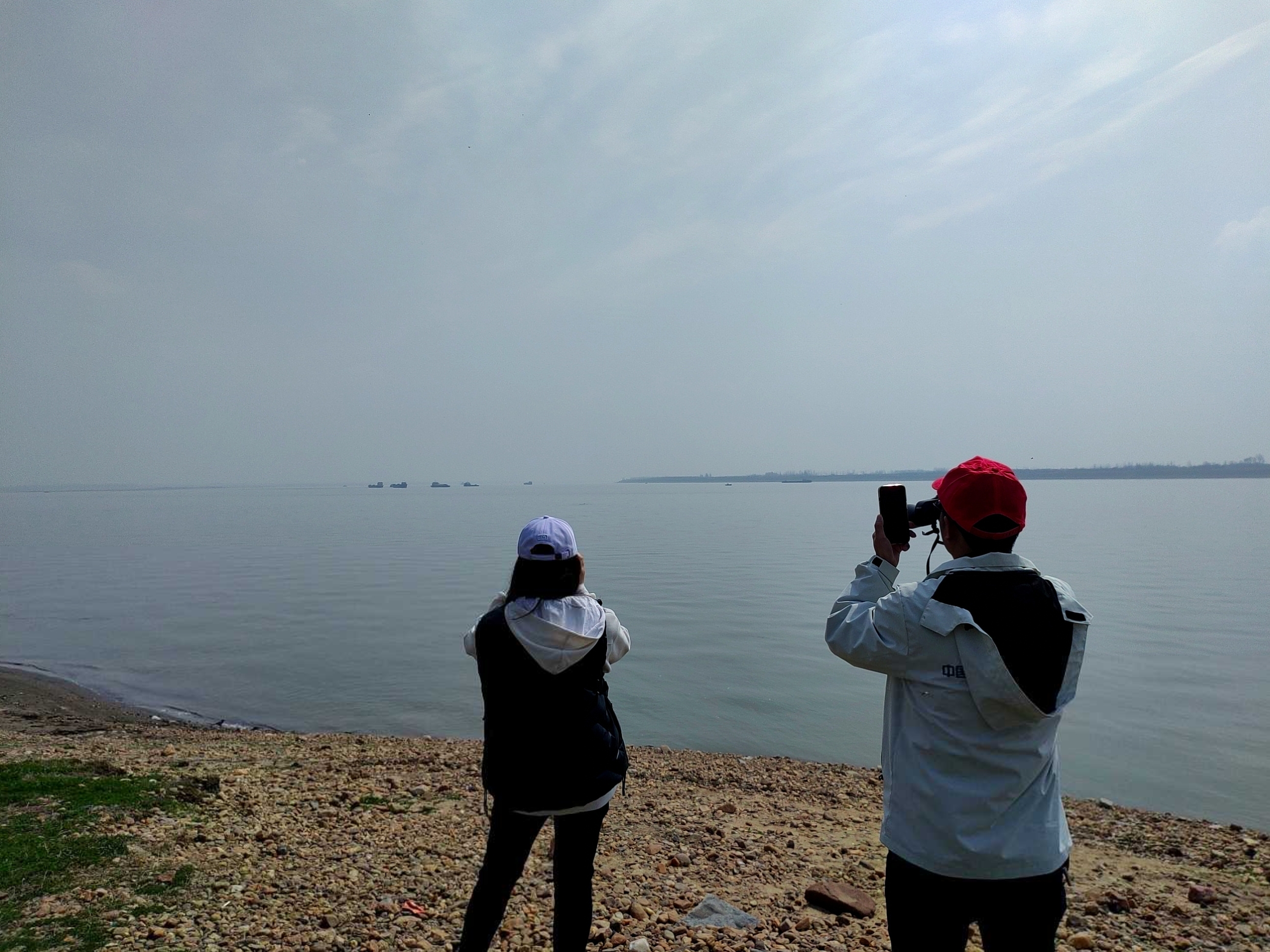 3月14日,生态环境志愿者们在守望江豚。通讯员徐建利 供图