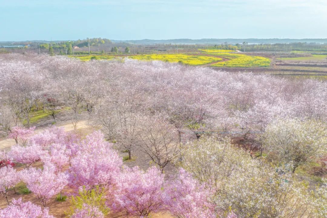 百花芳馨,美宿有约。梁子湖畔万千粉黛染春色,从未来家园到枫香雲堡,桃粉花黄一片梦幻。