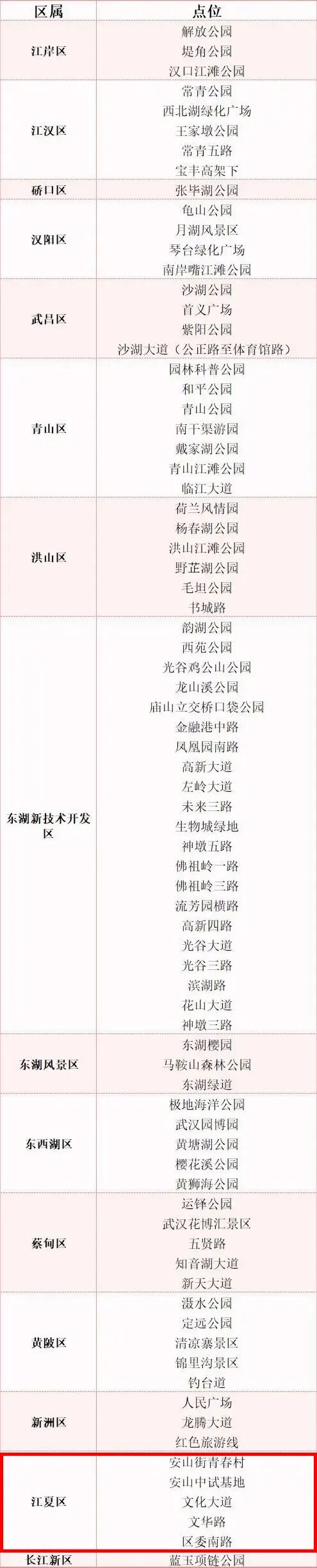 其中江夏区共有4处
