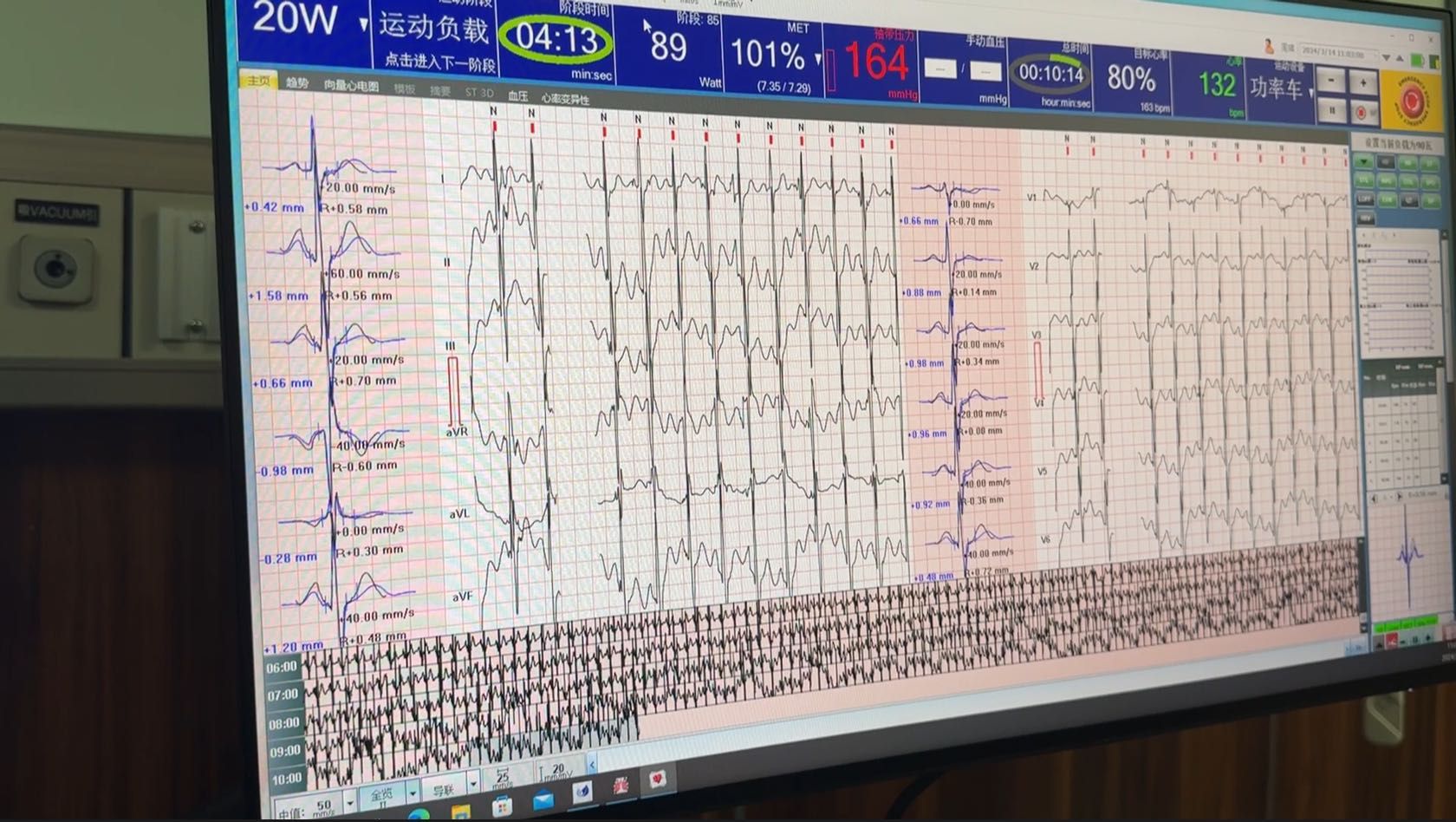 李颖介绍,运动量越大的时候,我们心脏就需要给机体的供血越多,然后肺给身体供的氧也越多,才能够满足运动的要求。过去我们对于心脏功能和肺功能的检测,基本上是在一个静止状态下完成的,所以它不能够更好地反映对运动的需求。