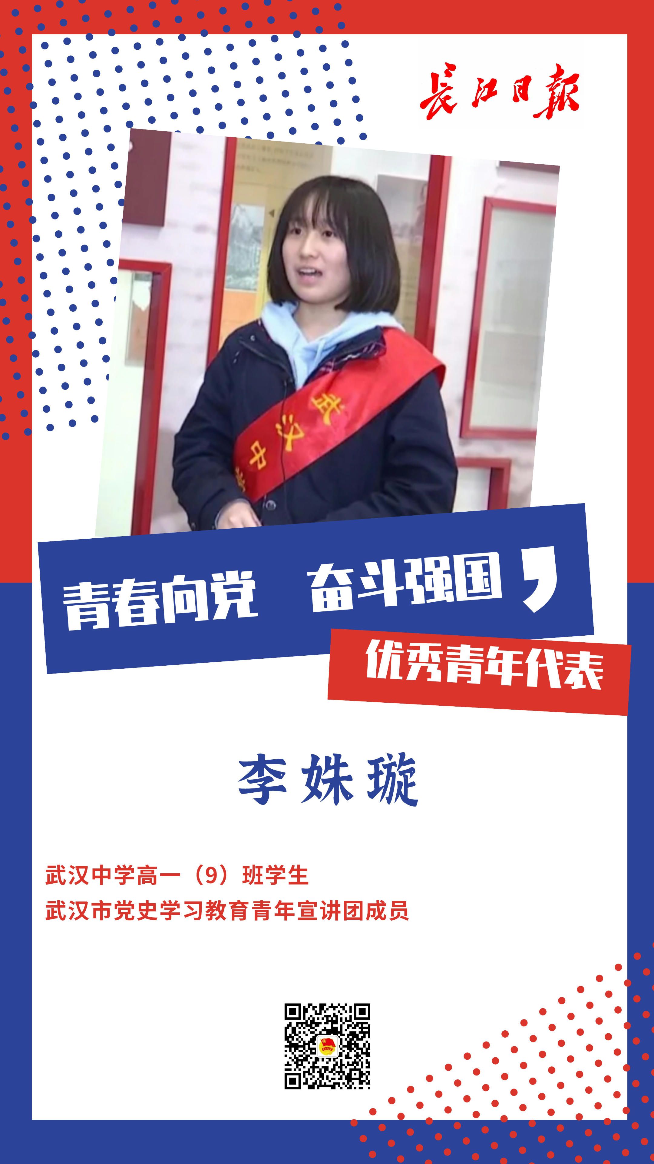 武汉中学高一(9)班学生李姝璇是武汉中学“闪闪红星”校史讲解队的一员,她说,“在一次次讲述学校百年历史的过程中,我越发明晰一名00后共青团员肩负的历史使命,我将铭记英雄城市历史,传承红色革命精神。”