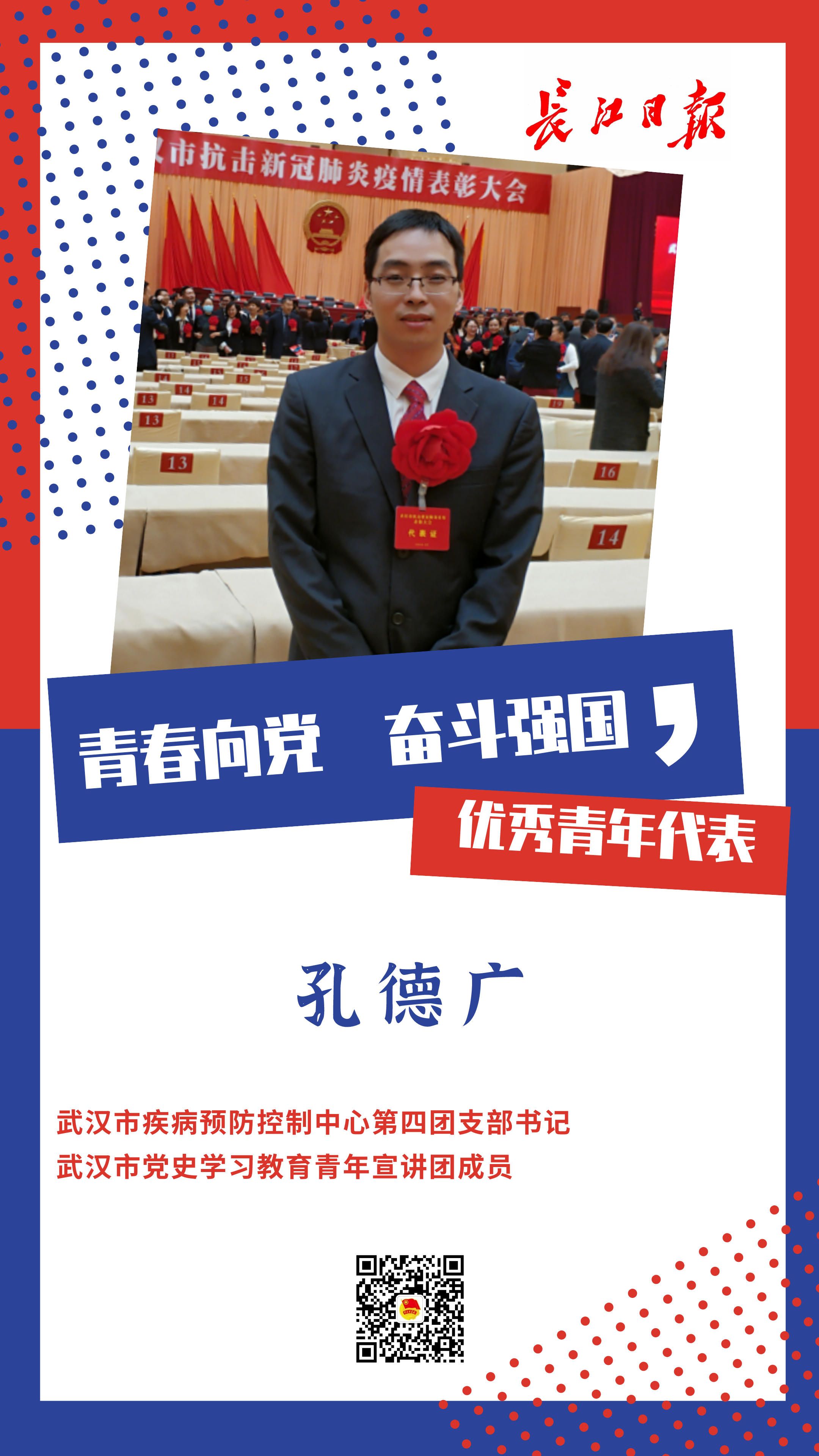 武汉市疾病预防控制中心第四团支部书记孔德广是全国抗击新冠肺炎疫情先进个人,疫情期间,他所在的团支部主要承担流行病学调查任务。这是与病人距离最近的危险工种。组内56名成员不分昼夜,坚决做到确诊病例流调和密接管理“100%日清日结”,连续100多个日日夜夜,参与完成全市5万多例确诊病例的调查和9万多名密接的排查工作。“那个时候,队员们每天要接打100多个工作电话,却抽不出时间给家人打一个电话报平安。”