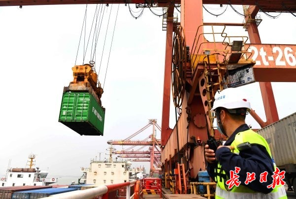 4月25日上午,长江日报记者在武汉新港阳逻二期码头岸边,见到了武港集装箱公司营运操作部经理余立麒。